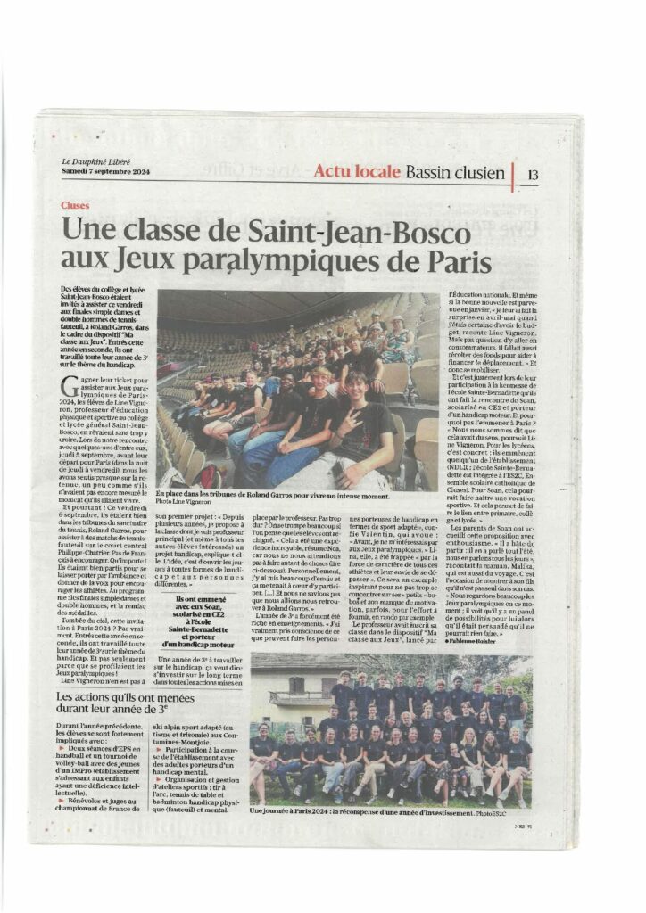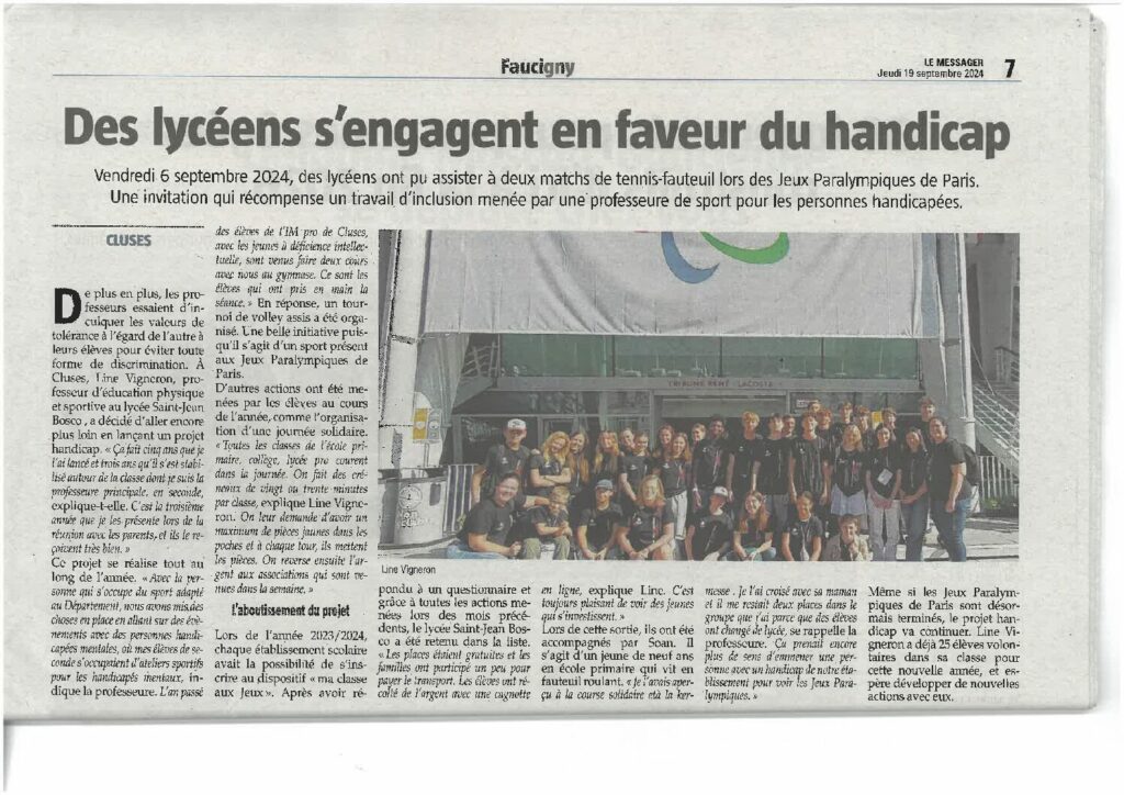 Saviez-vous que 30 élèves de la classe de 2nde A de l’année dernière, encadrés par Mme Vigneron, ont été sélectionnés pour assister à une épreuve des Jeux Paralympiques ?