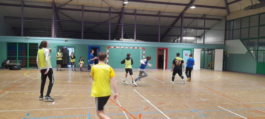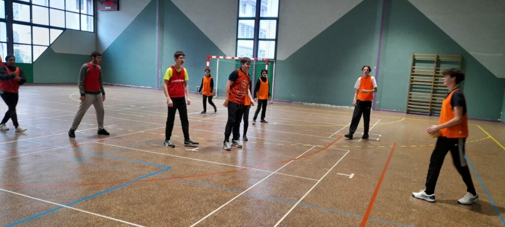 Ce lundi 11 décembre 2023, 8 jeunes de l’Impro ” aller plus haut” de Cluses ont participé à une séance d’EPS de handball avec les 2A.