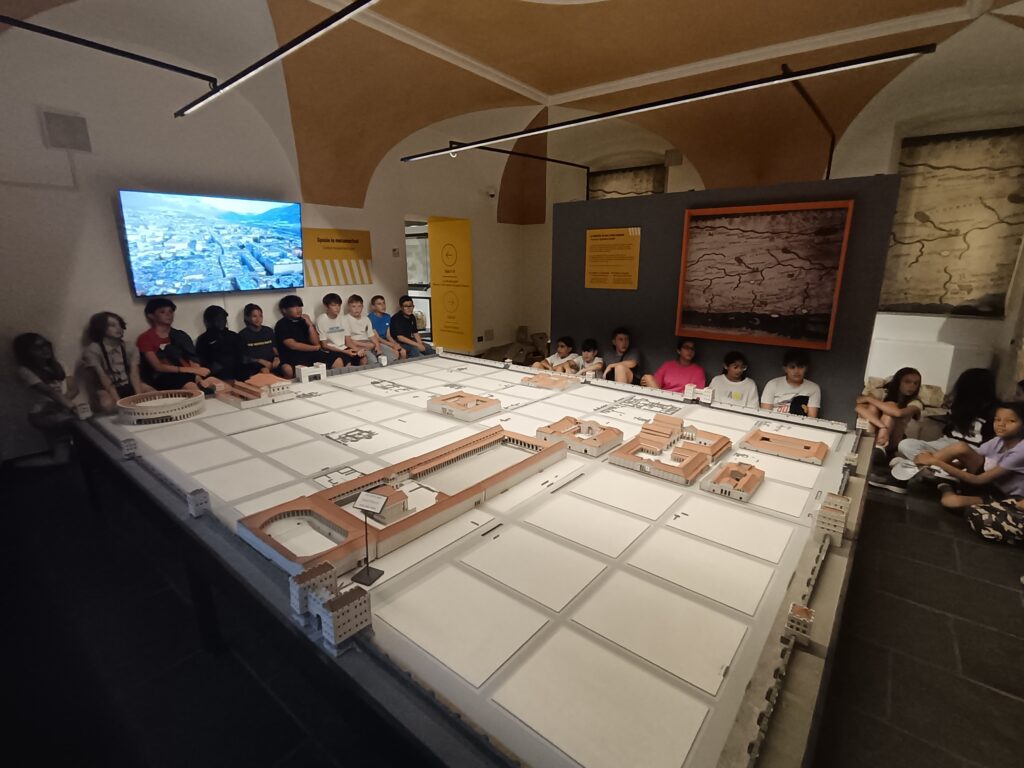 La visite s’est poursuivie au Musée archéologique régional, où les élèves ont pu mieux comprendre le plan et l’organisation d’Aoste à l’époque romaine grâce à des maquettes, objets et documents d’époque.