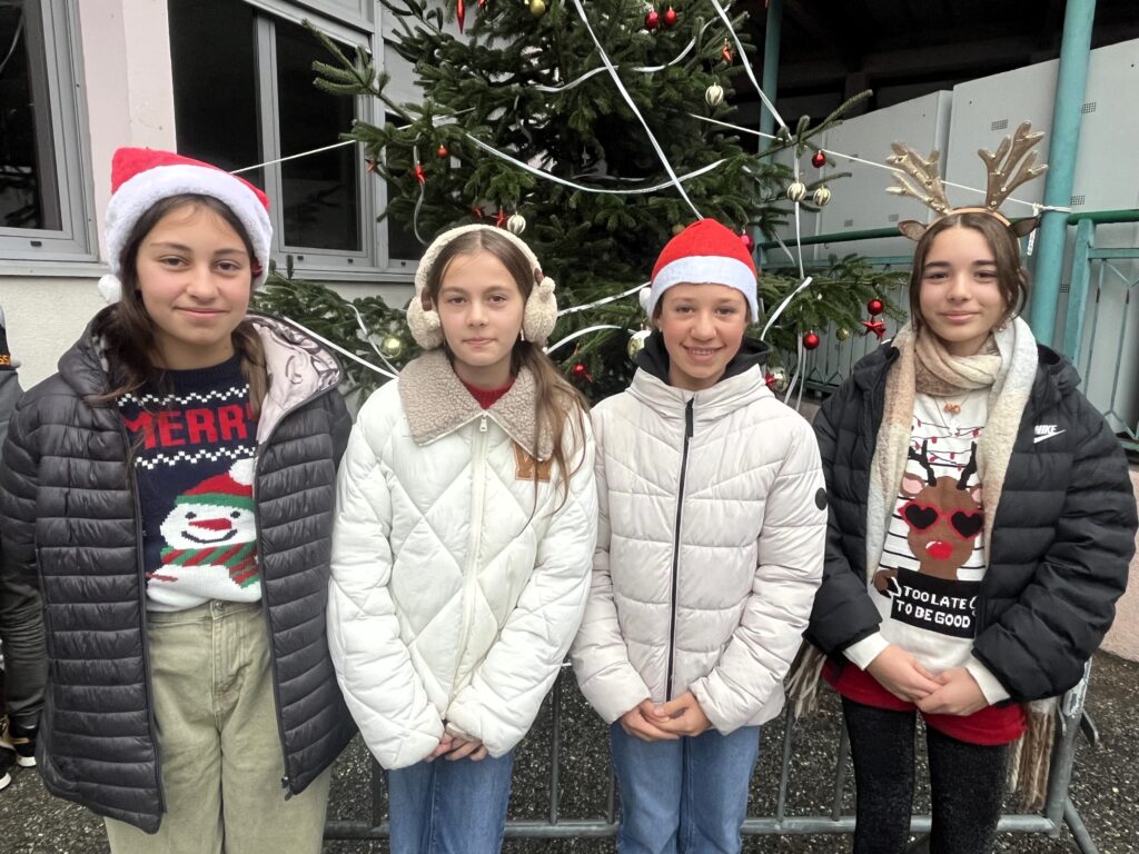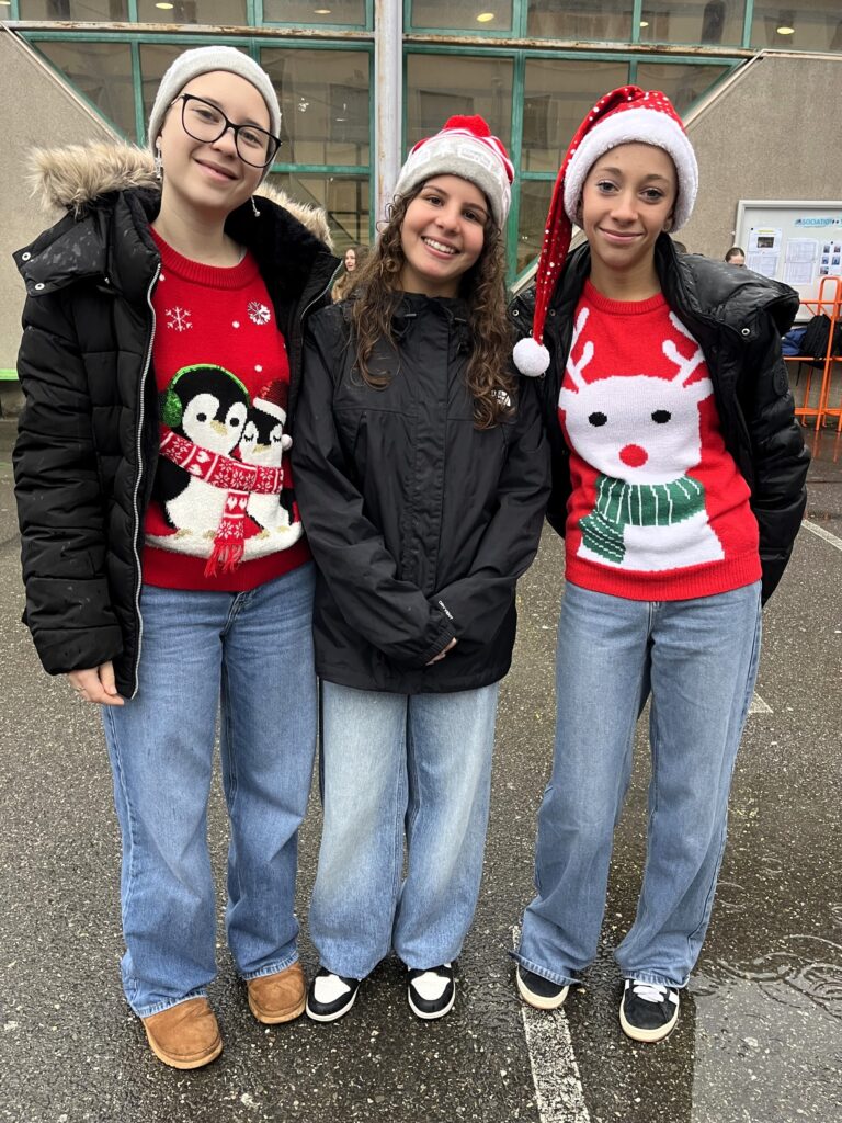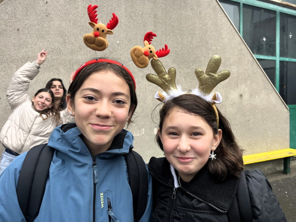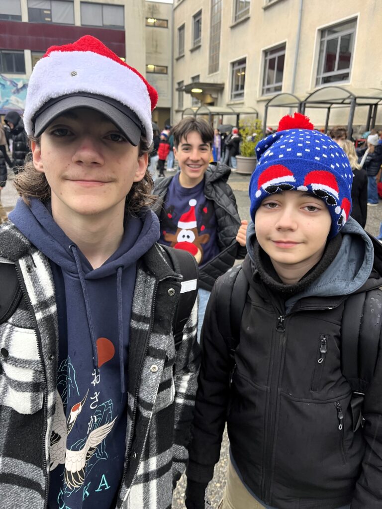 Ce jeudi 19 décembre, élèves, professeurs et employés ont été invités à venir au collège vêtus de tenues ou d’accessoires de Noël : pulls, robes, bonnets, et autres accessoires festifs étaient de mise.