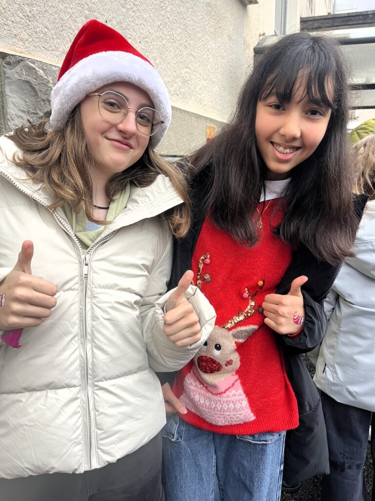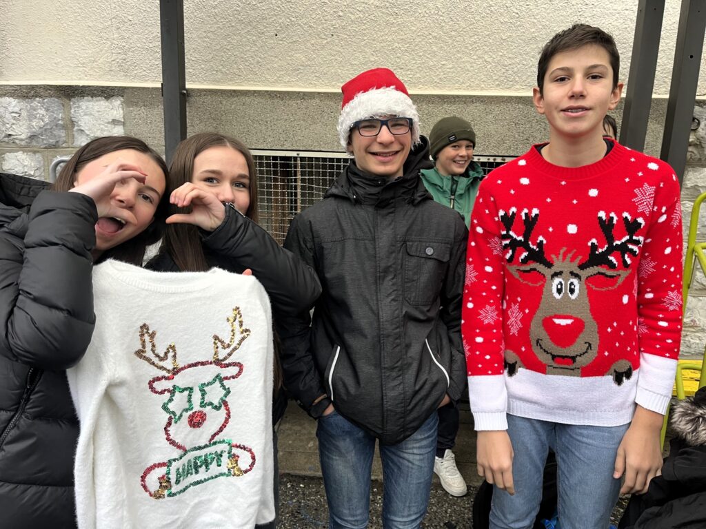 L’ambiance était joyeuse et conviviale, de nombreux participants ayant joué le jeu avec enthousiasme. Les couloirs du collège se sont transformés en un véritable défilé de mode de Noël, où l’on pouvait admirer une grande variété de tenues originales et colorées. Même le père noël était parmi nous !