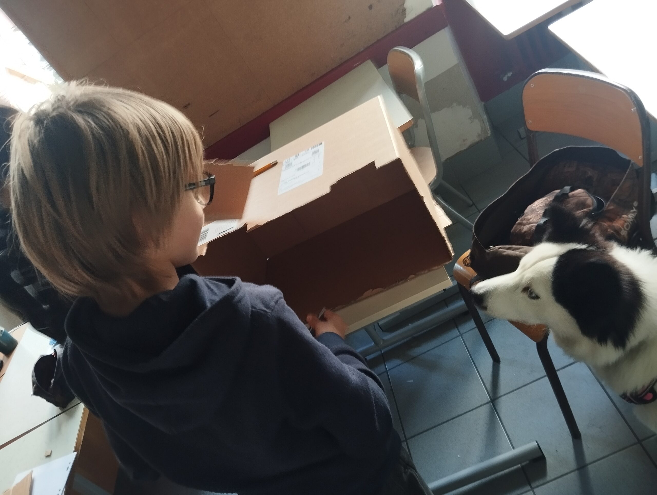Hier, Mme Prévot a proposé un nouvel atelier de médiation canine au sein du collège Saint Jean Bosco. À cette occasion, 2 élèves de 6ème Gourmande, Zoé et Jimmy, se sont penchés sur un défi de taille : imaginer un jeu permettant d’occuper Tartif, notre magnifique vedette canine. Car elle aussi, parfois, trouve les journées longues !