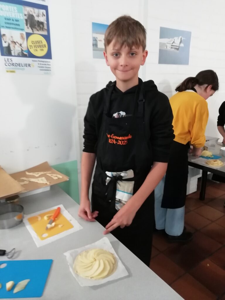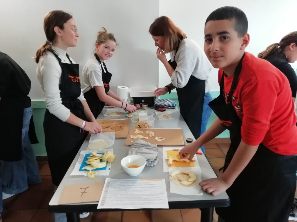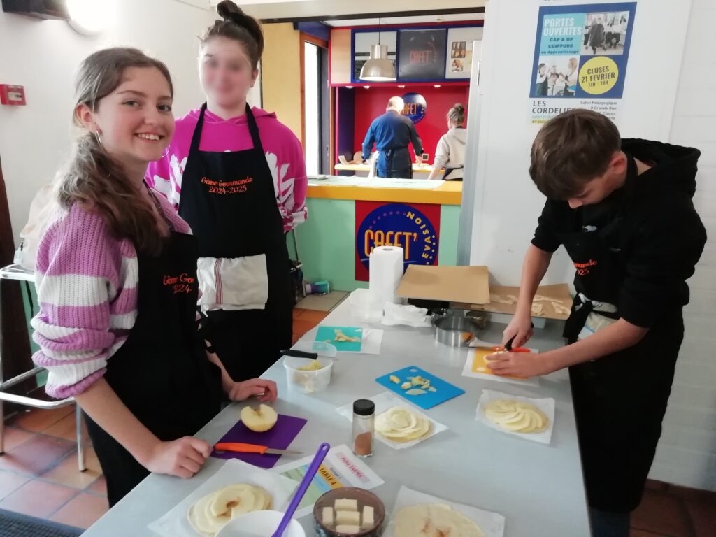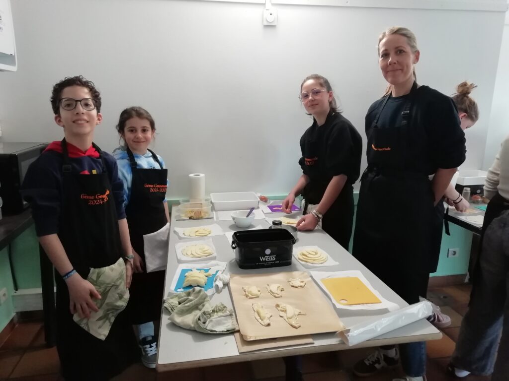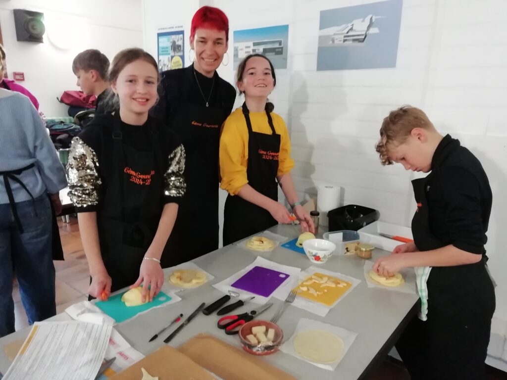 Tout au long de la matinée, les élèves ont appris à étaler la pâte feuilletée, à découper finement les pommes, à soigner la présentation, puis à enfourner leurs créations. Un moment d’apprentissage, mais aussi de plaisir et de partage, dans une ambiance conviviale et bienveillante.