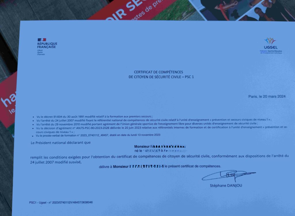 C’est avec une grande joie que nous nous sommes réunis, jeudi 13 juin dernier, pour célébrer la remise des diplômes du PSC1 (Prévention et Secours Civiques de niveau 1) pour nos élèves de 4ème.