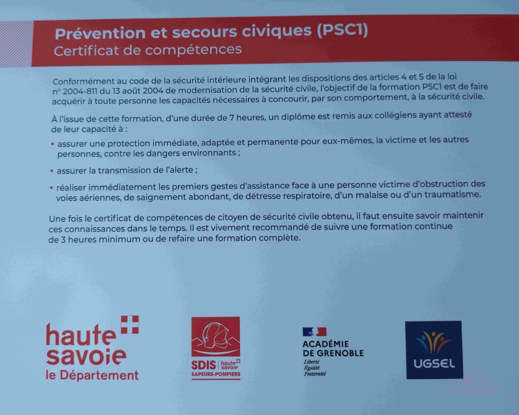 Le PSC1 est un diplôme essentiel qui permet aux élèves d’acquérir des compétences de base en matière de premiers secours. Il leur donne les outils nécessaires pour réagir efficacement en cas d’urgence, que ce soit à la maison, à l’école ou dans la vie quotidienne.