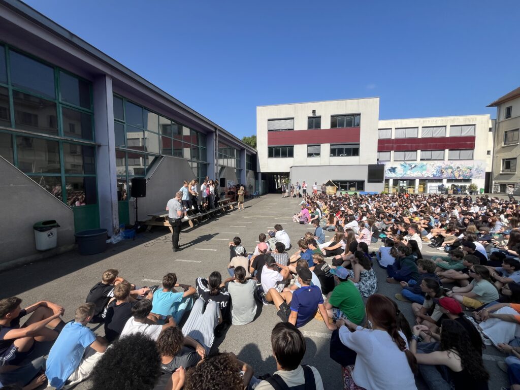 Mardi 17 juin, une cérémonie de récompenses a été organisée au sein de l’établissement pour mettre à l’honneur nos collégiens et lycéens qui se sont distingués cette année dans le cadre des Championnats de France UGSEL et du projet artistique hip-hop. Un moment de célébration collective, chaleureux et bien mérité, pour saluer leur engagement, leurs efforts et leurs talents.