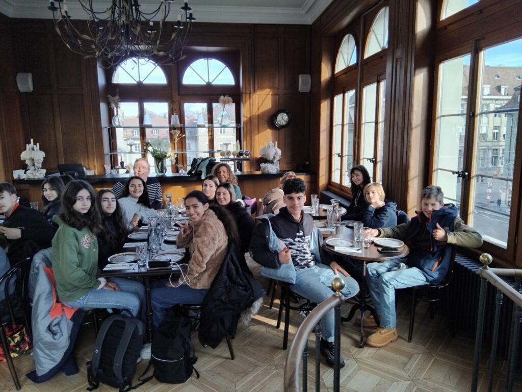 Accompagnés d’une guide passionnée, les élèves ont exploré l’histoire riche de Fribourg. Chaque pause était l’occasion de déguster les spécialités locales : la “cuchaule”, un pain au safran délicieusement parfumé, la moutarde de Bénichon, ainsi que les célèbres fromages Gruyère et Vacherin. Le point culminant de cette aventure culinaire fut sans doute la dégustation de la meringue accompagnée de double crème, une véritable cerise sur le gâteau.