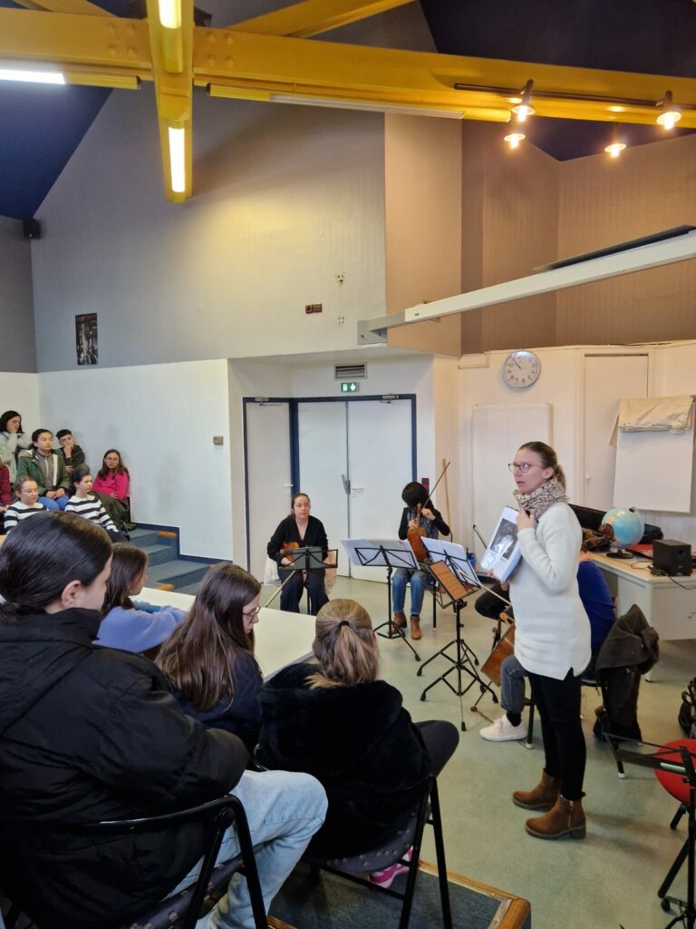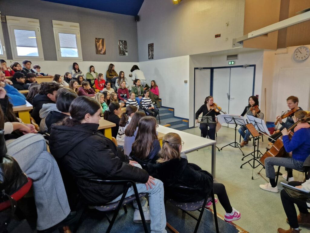 Dans le cadre d’un projet pédagogique en éducation musicale, nous avons eu la chance d’accueillir le 4 mars dernier un quatuor à cordes de l’Orchestre des Pays de Savoie.