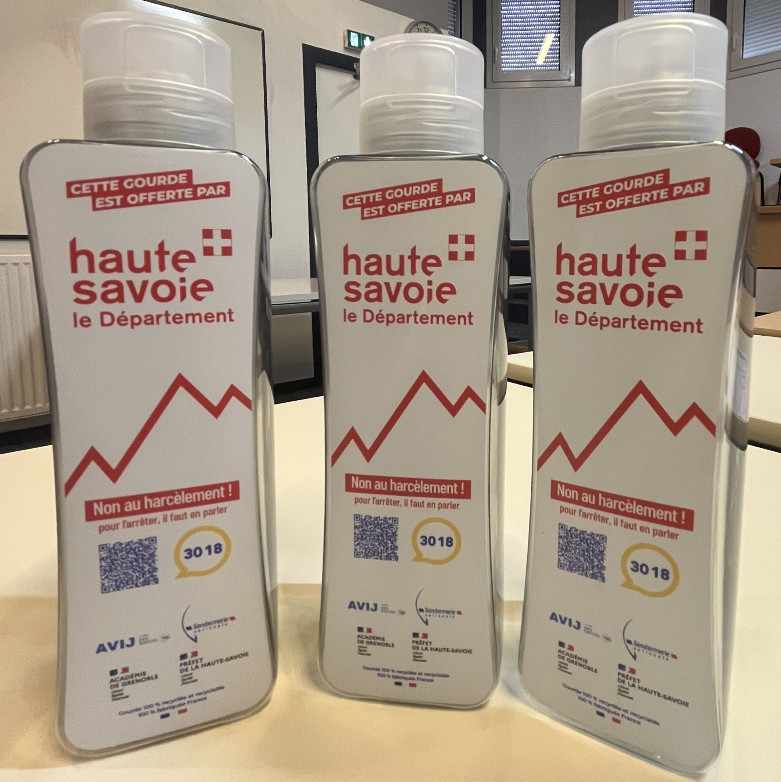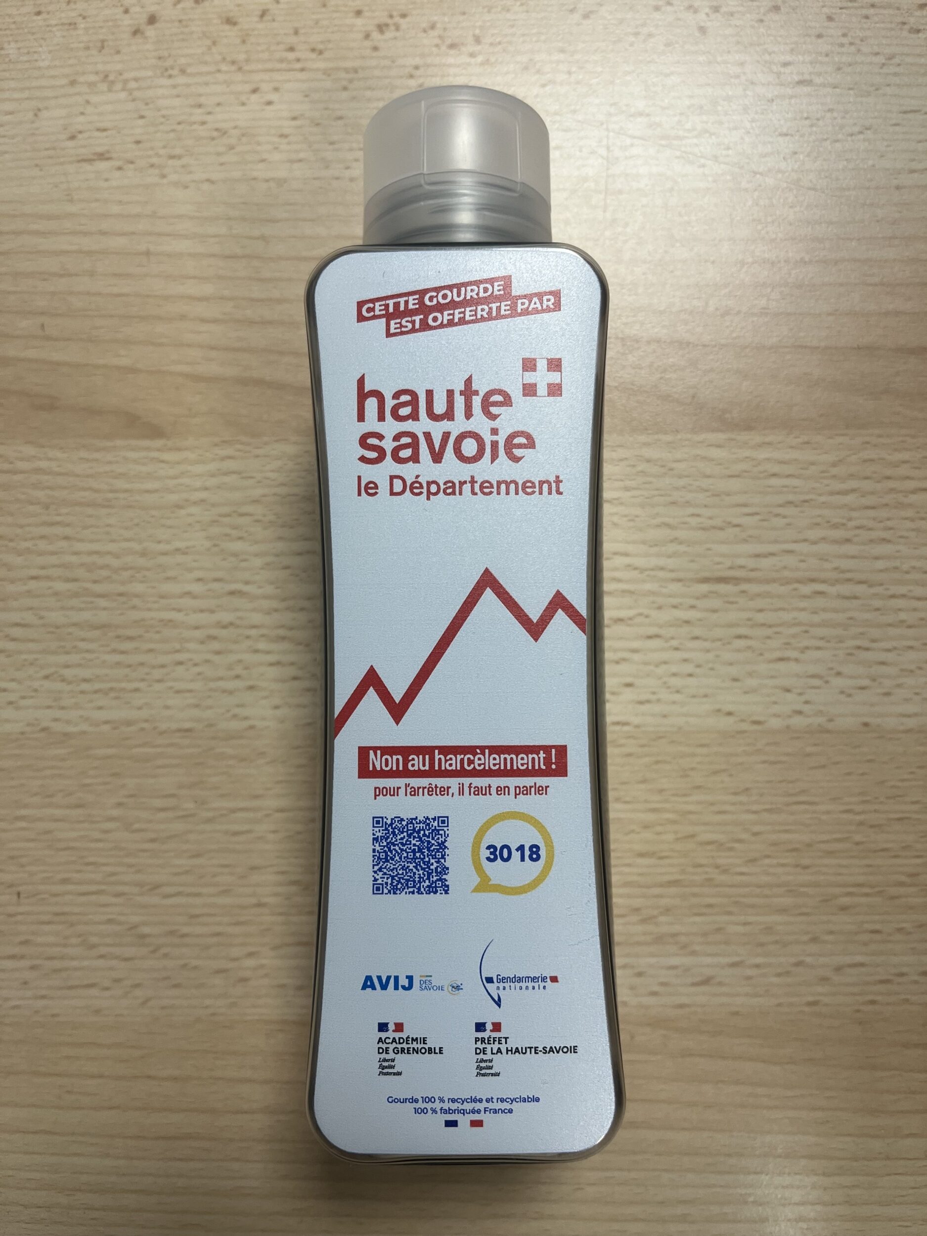 Fabriquées en France à partir de matériaux recyclables et respectueux de l’environnement, ces gourdes s’inscrivent pleinement dans une démarche de développement durable, à laquelle notre collège est particulièrement attaché.