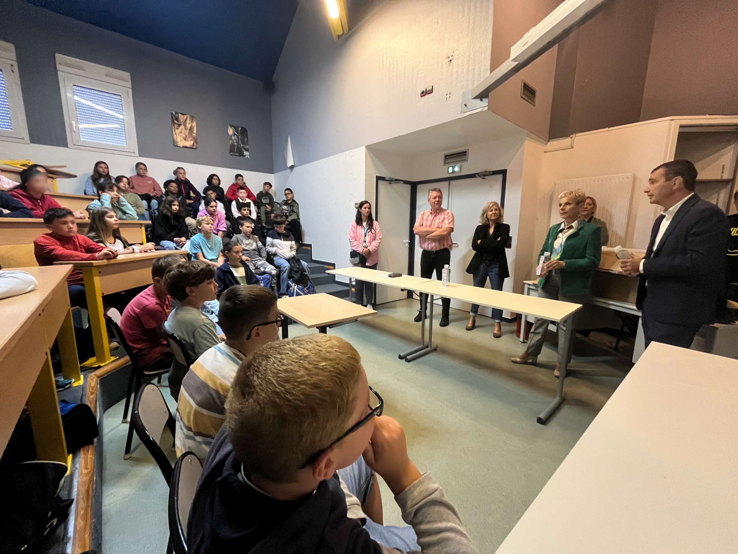 Mardi denier, nos 181 élèves de 6ᵉ ont reçu une gourde offerte par le Conseil Départemental. Cette initiative a pour objectif de sensibiliser les collégiens à la réduction des déchets plastiques et de les accompagner dans la lutte contre le harcèlement.