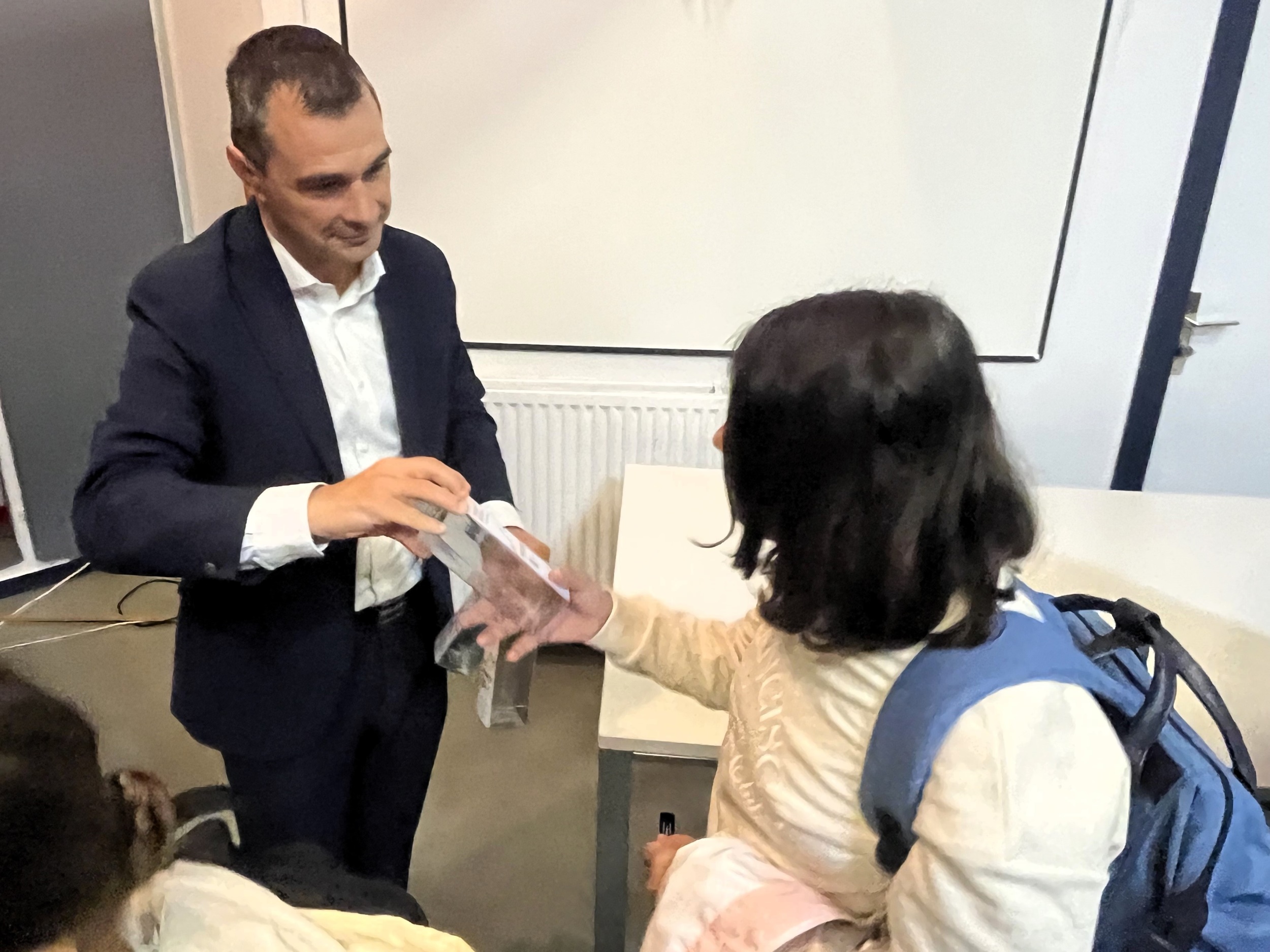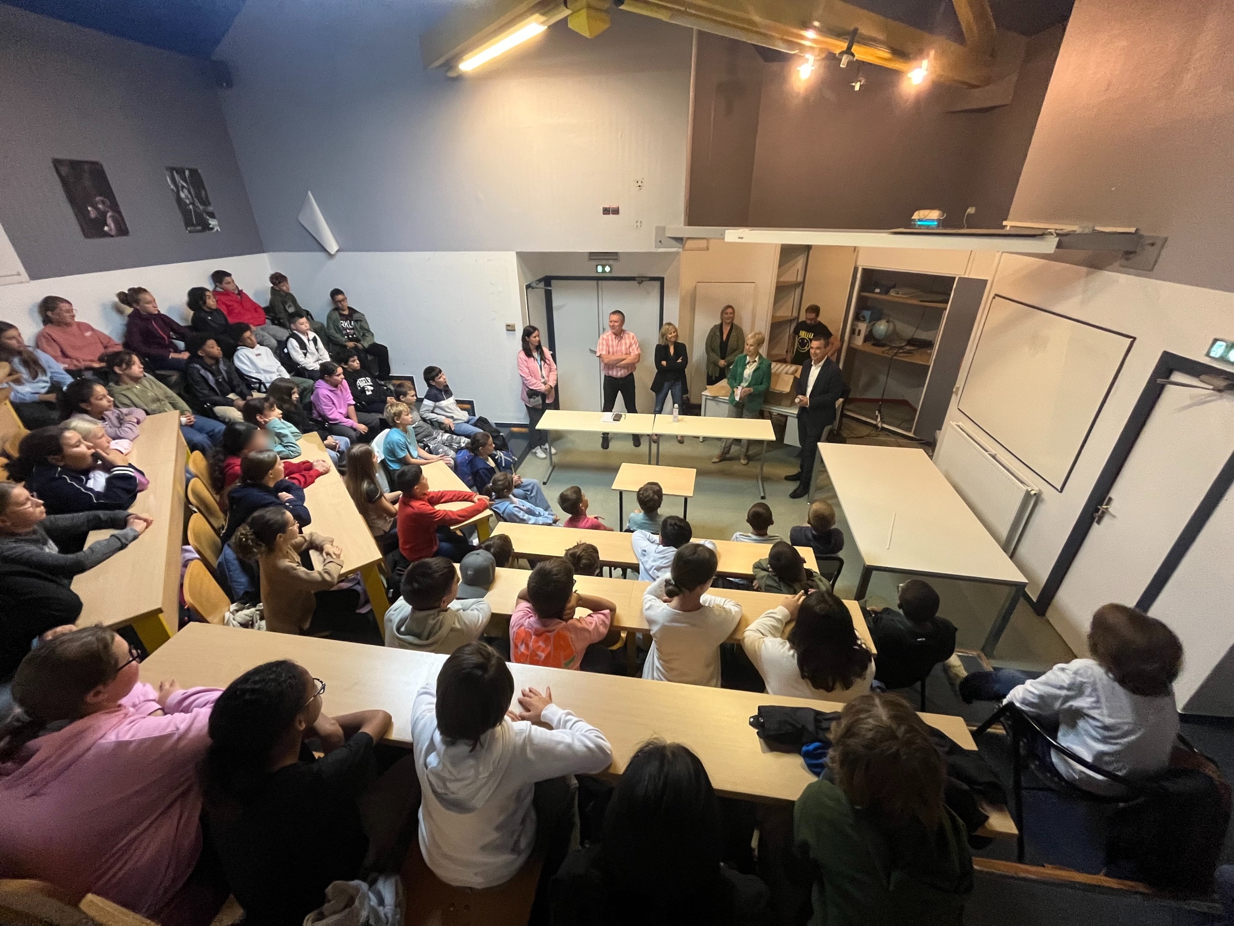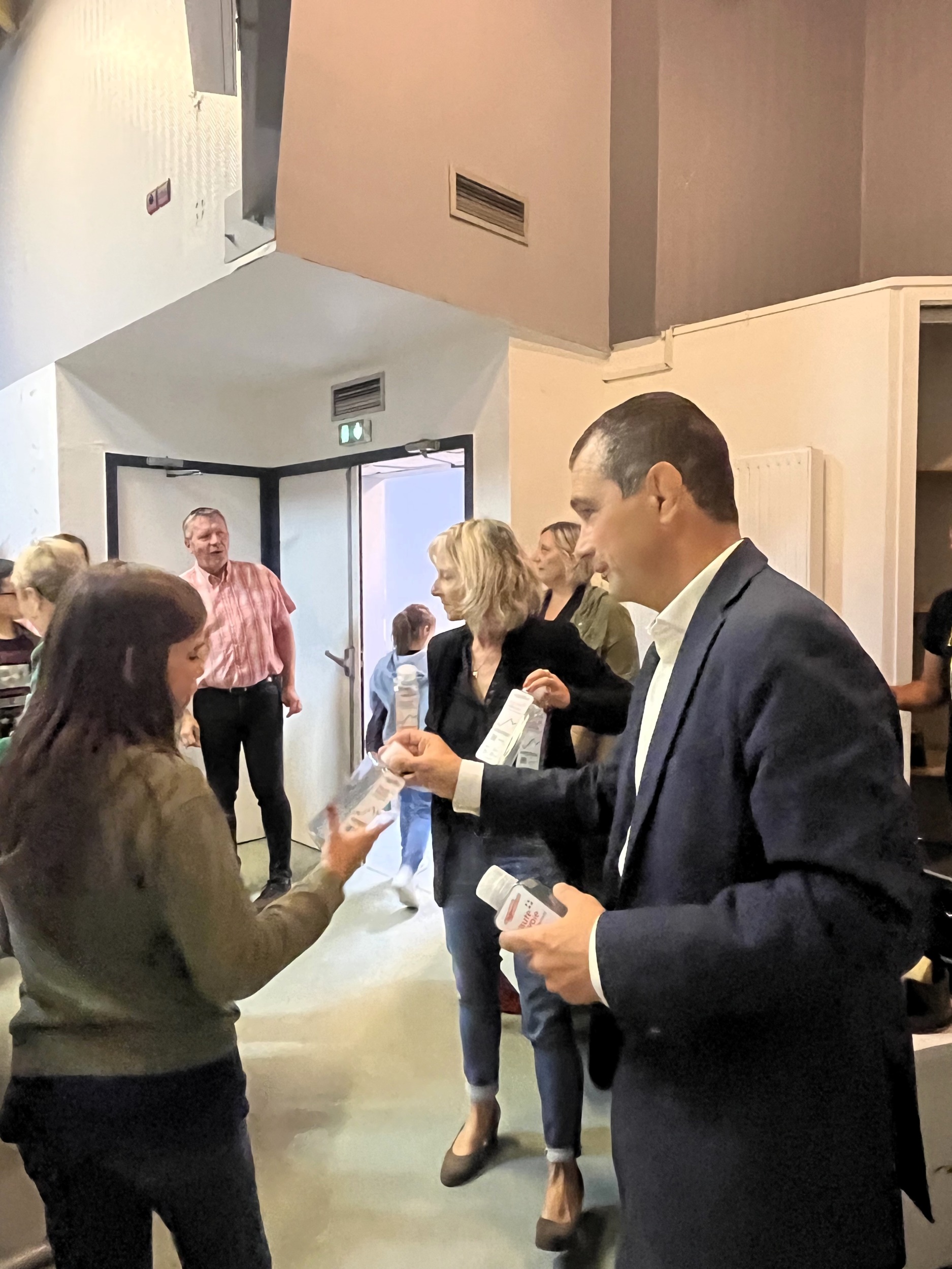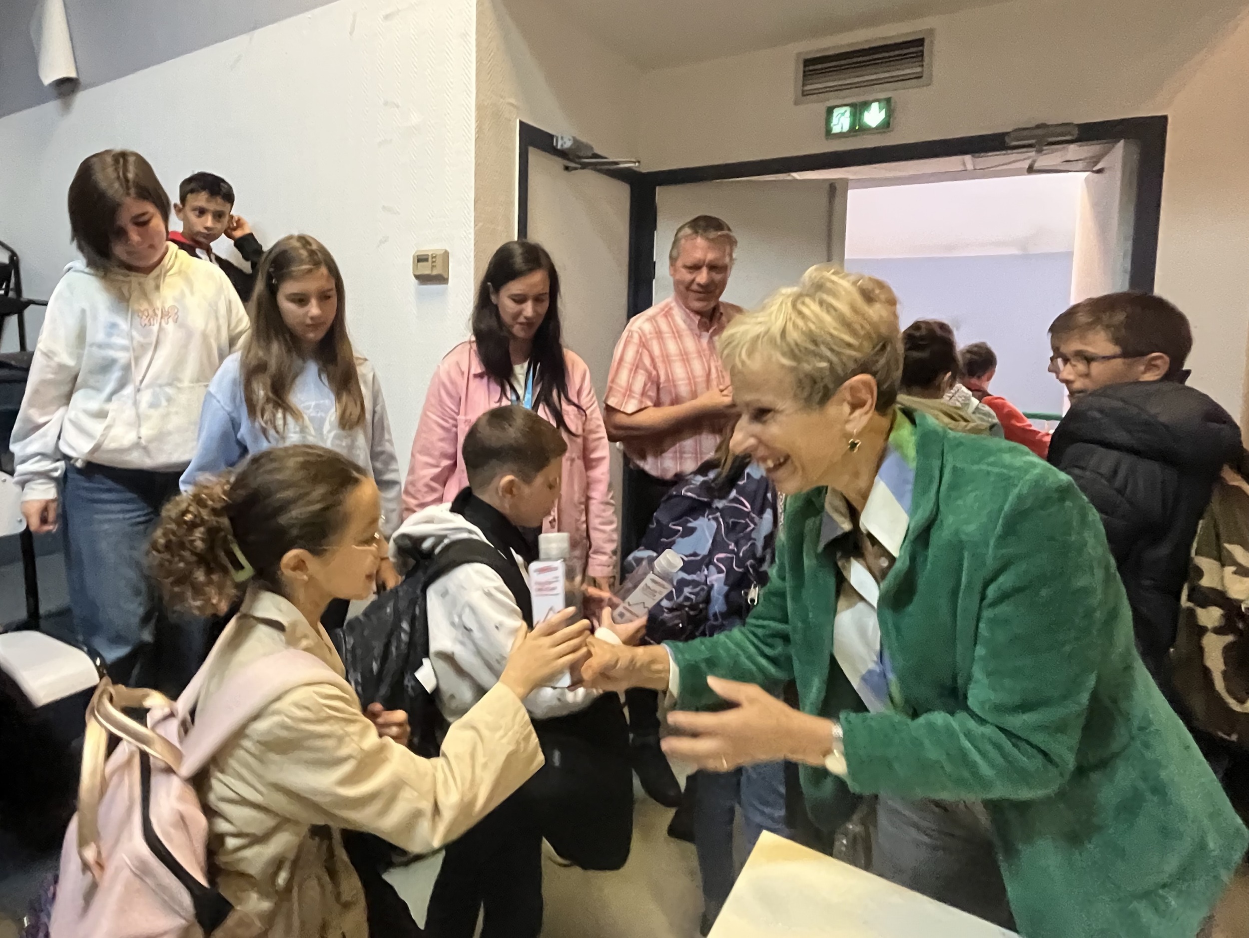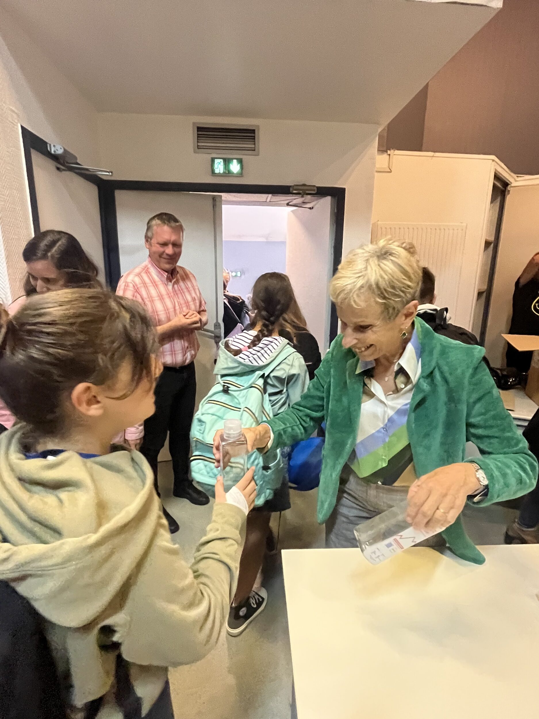Pour l’occasion, Marie-Antoine Métral, conseillère départementale du canton de Cluses, et Jean-Philippe Mas, maire de Cluses, sont venus remettre en main propre ces gourdes réutilisables à nos élèves.