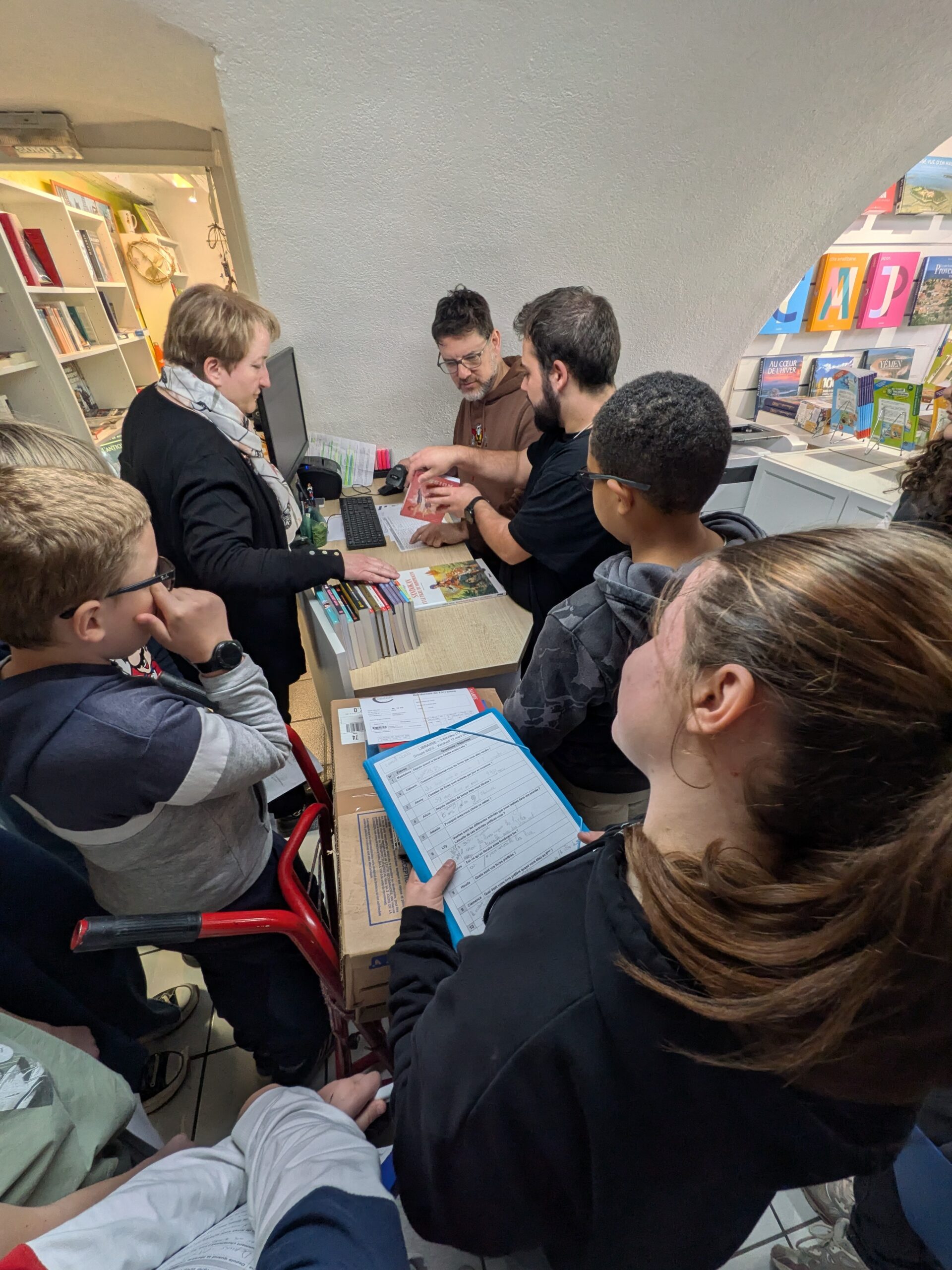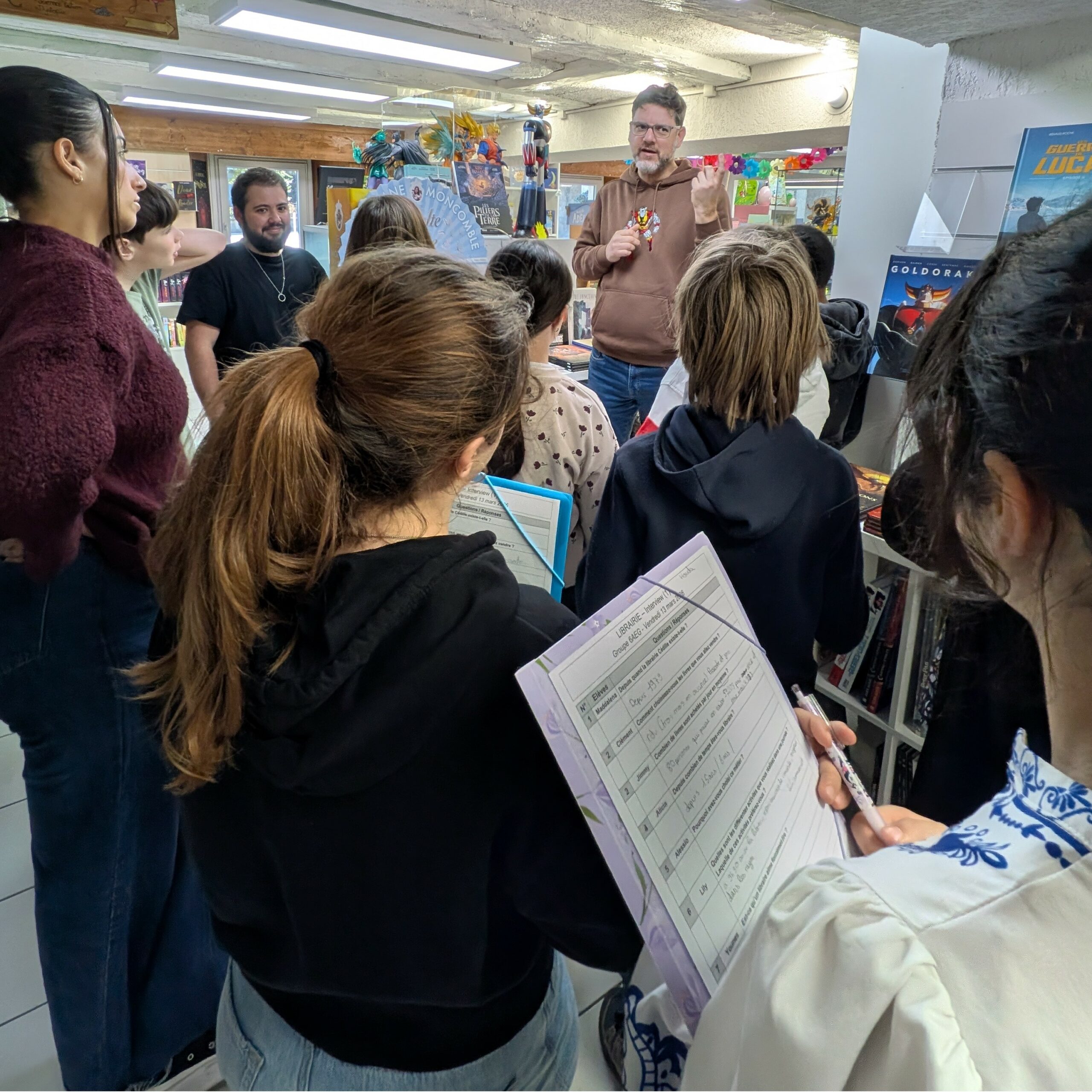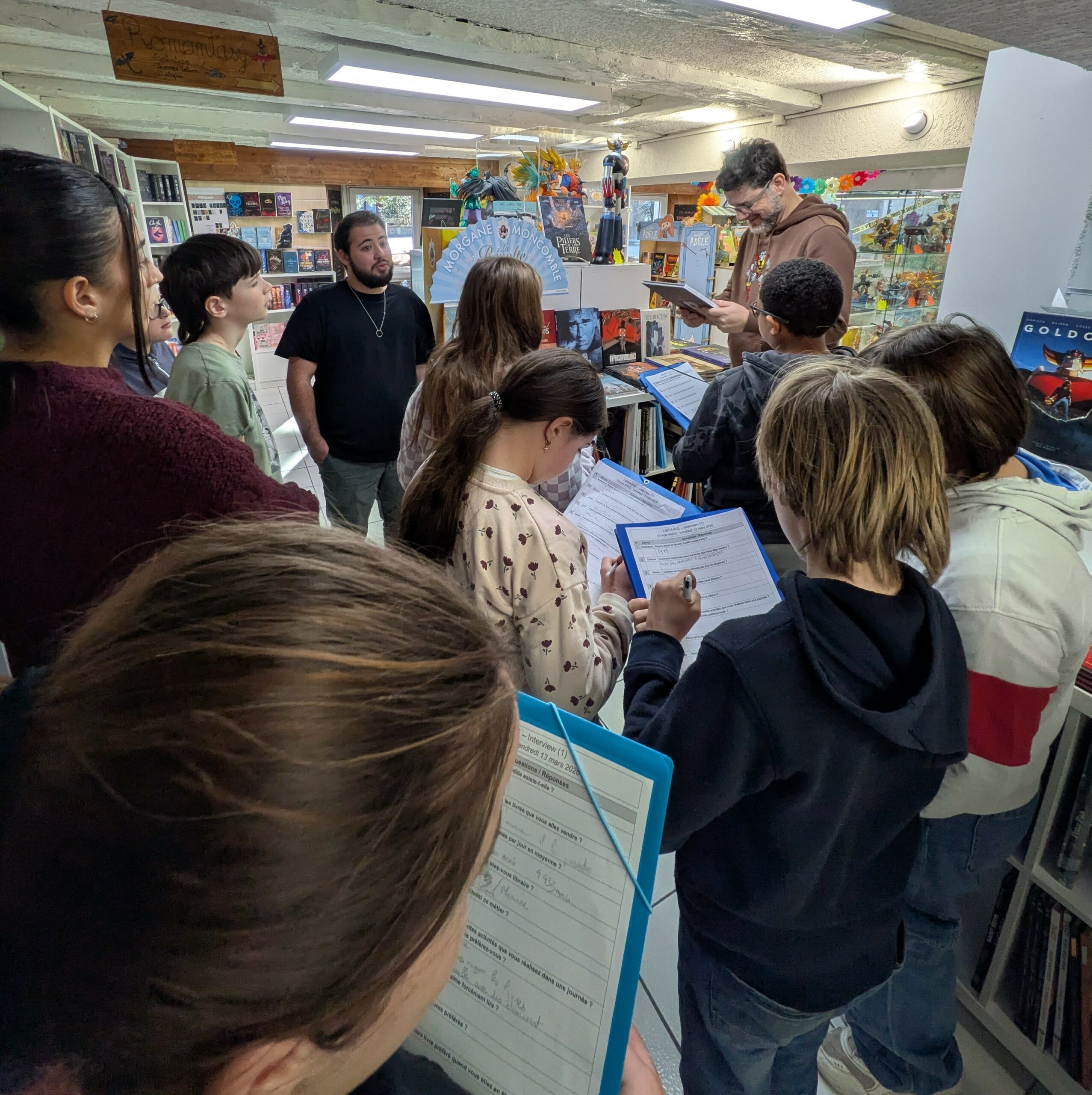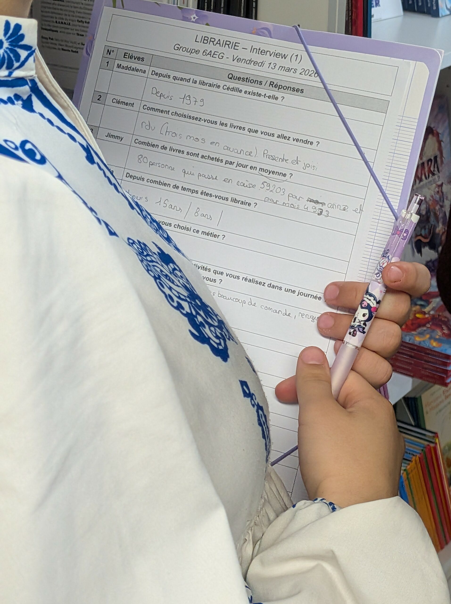 Avant la visite, les élèves ont préparé une interview afin de mieux comprendre le travail du libraire et le fonctionnement d’une librairie.