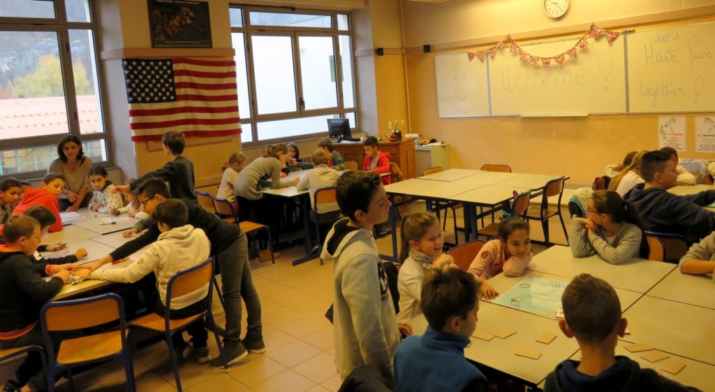 Deux séances au cours desquelles les groupes d’élèves “ont tourné” sur les différents îlots pour découvrir et jouer en anglais avec l’aide des élèves de 6e jouant le rôle d’animateurs et de guides.