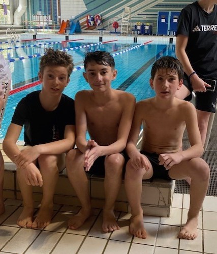 En 50 mètres crawl : 1er Alban Jobard – 6ème Ethan Labalette – 7ème Hugo Paturel