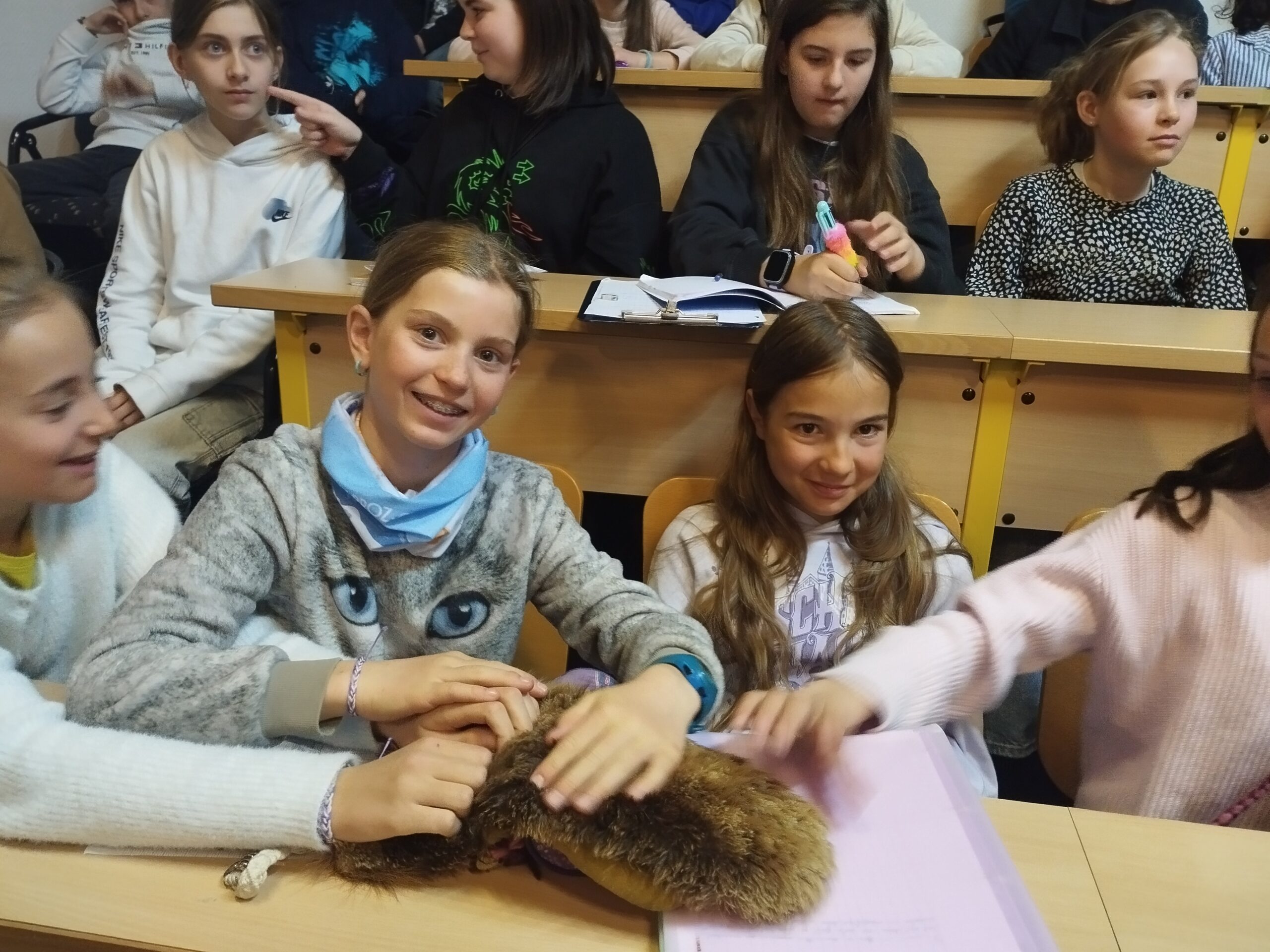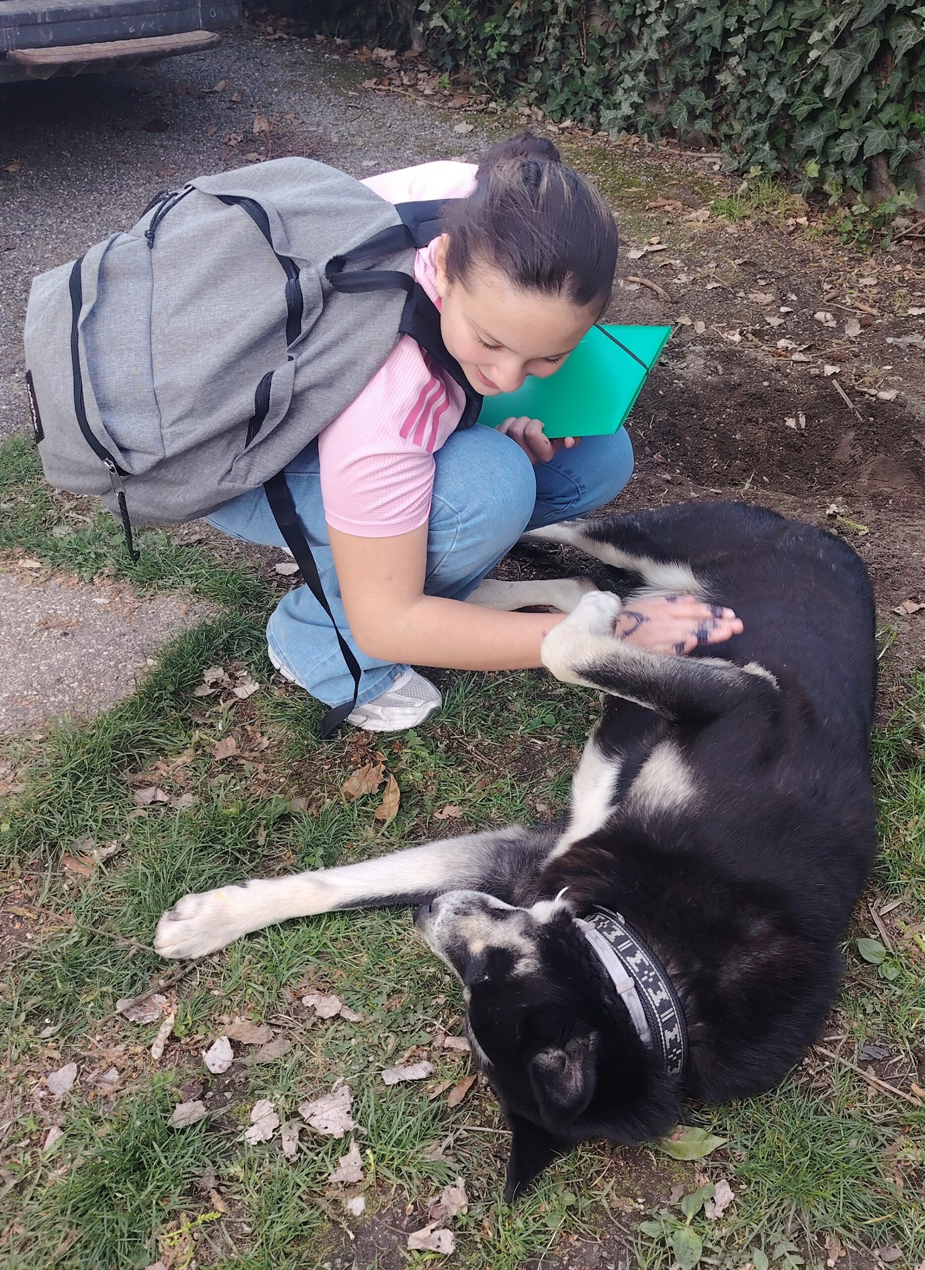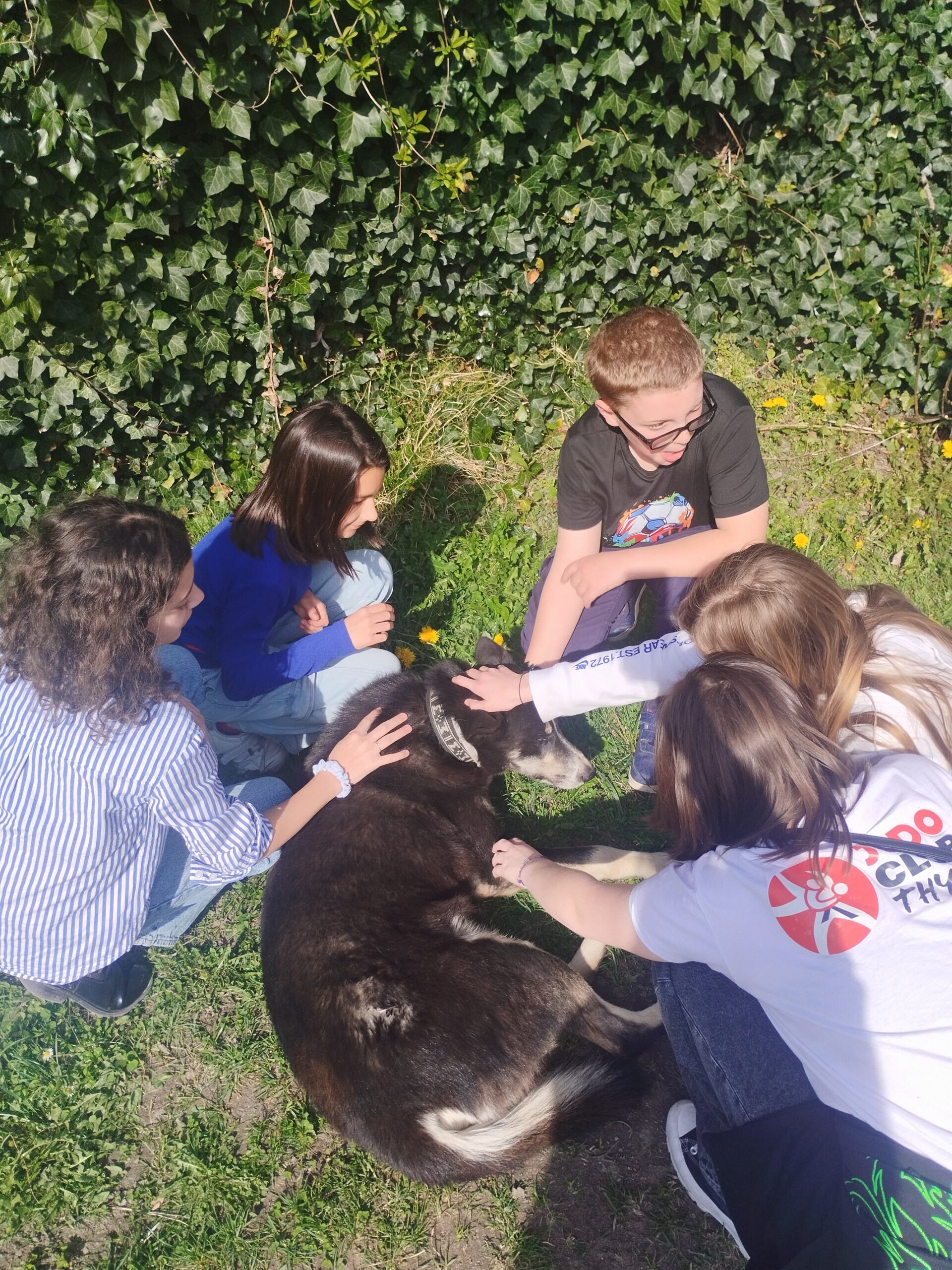 Moment fort de la journée : la rencontre avec « Petit Loup » et les autres chiens, qui a particulièrement marqué les élèves.