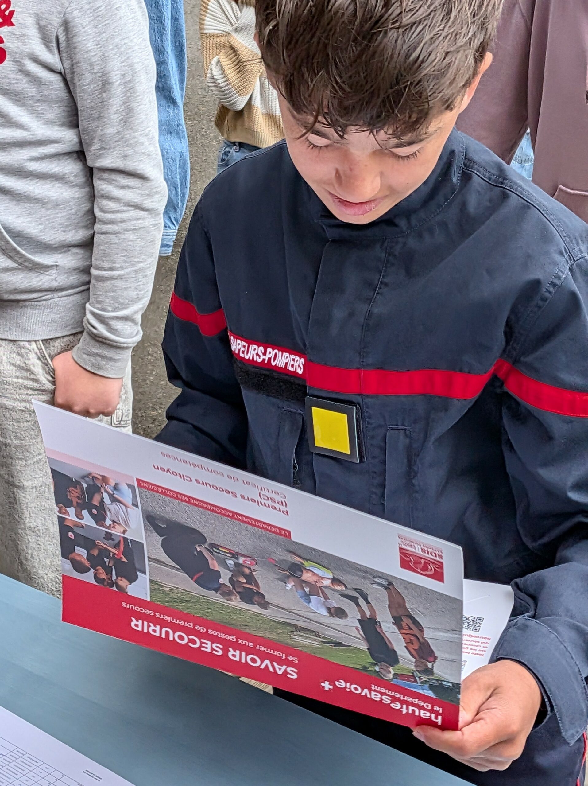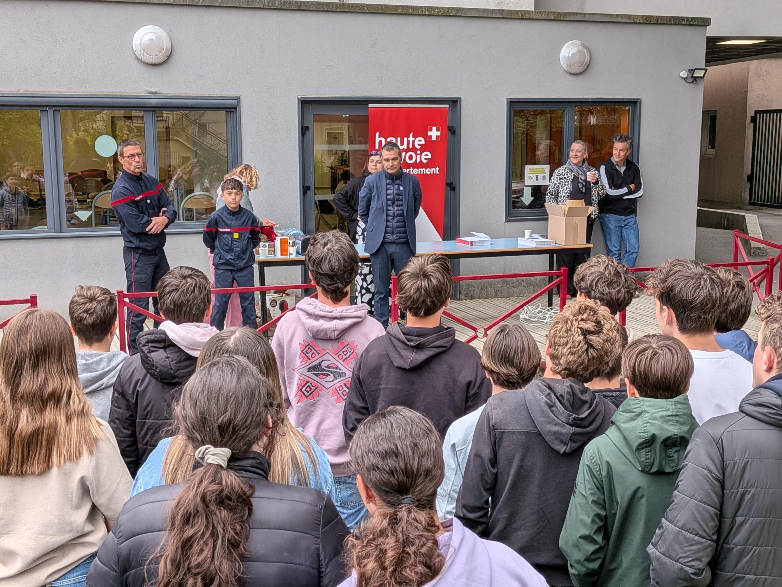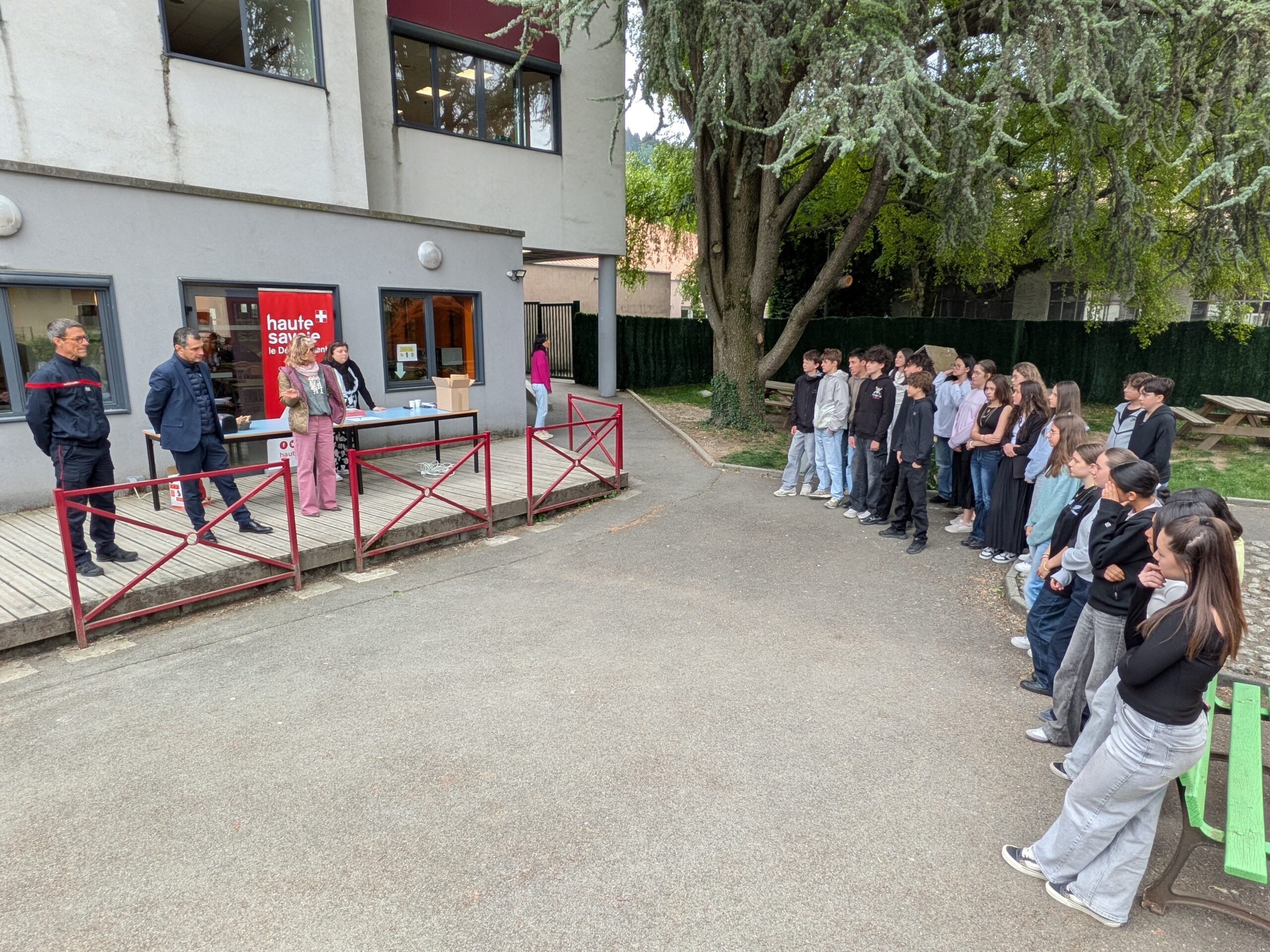 La cérémonie s’est déroulée en présence de Monsieur le Maire de Cluses, M. Mas, ainsi que du lieutenant Manuel Rousseau, de la caserne de Cluses. Leur présence illustre l’importance accordée à la prévention et à la sensibilisation aux gestes de premiers secours chez les jeunes. Nous les remercions chaleureusement pour leur participation.