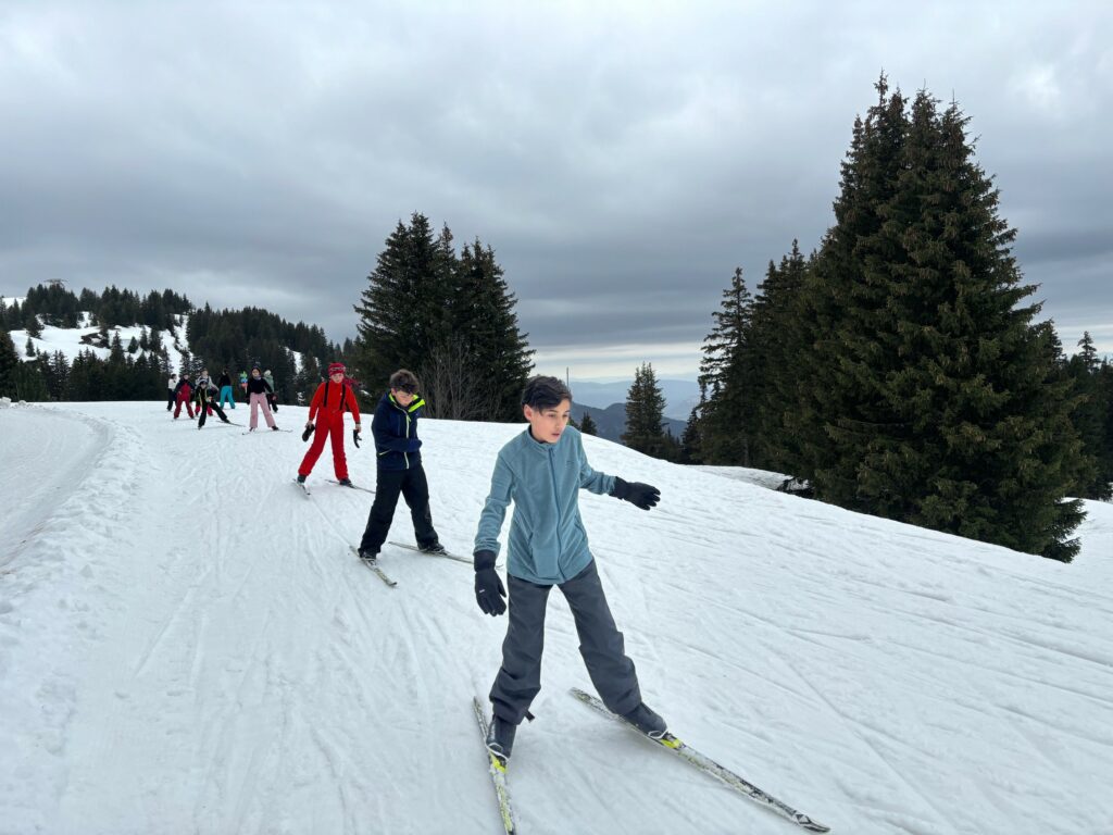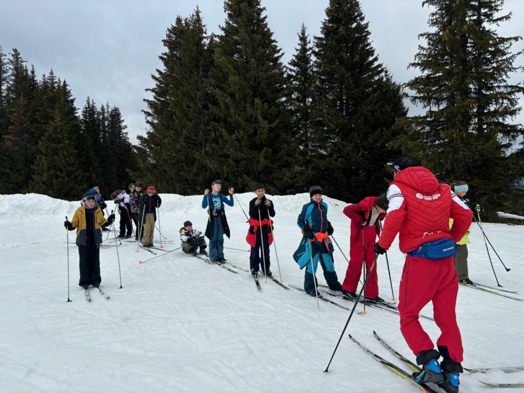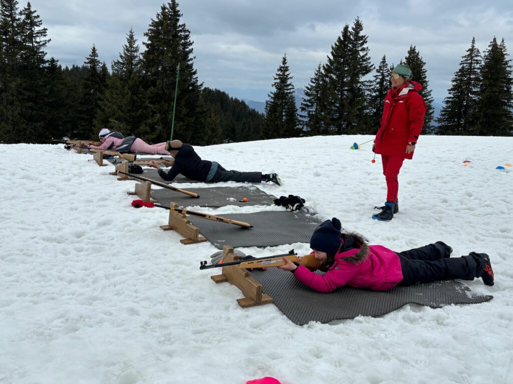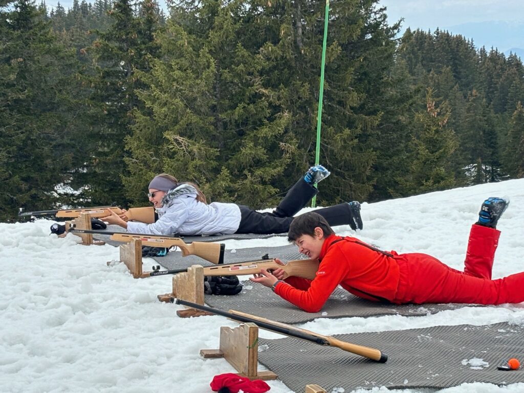 Le matin, un atelier de découverte/d’apprentissage du tir à la carabine laser a été organisé par groupes d’élèves et ils ont également revu les bases du pas de patineur. L’après-midi, tout le monde s’est réuni pour faire des épreuves de biathlon où les élèves ont pu s’essayer au tir après une course sur les skis.