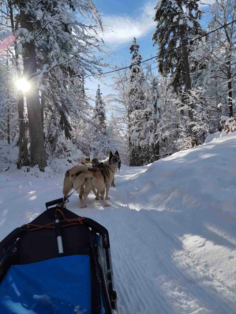 Les élèves ont tous fait leur baptême de chien de traineau sur une piste privée. Toutes les conditions étaient réunies pour marcher voire plutôt glisser  sur les traces de Jack London et Paul Émile Victor. Neige fraîche, grand froid et soleil étaient au rendez-vous! Il ne manquait plus que les aurores boréales.