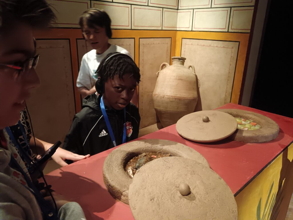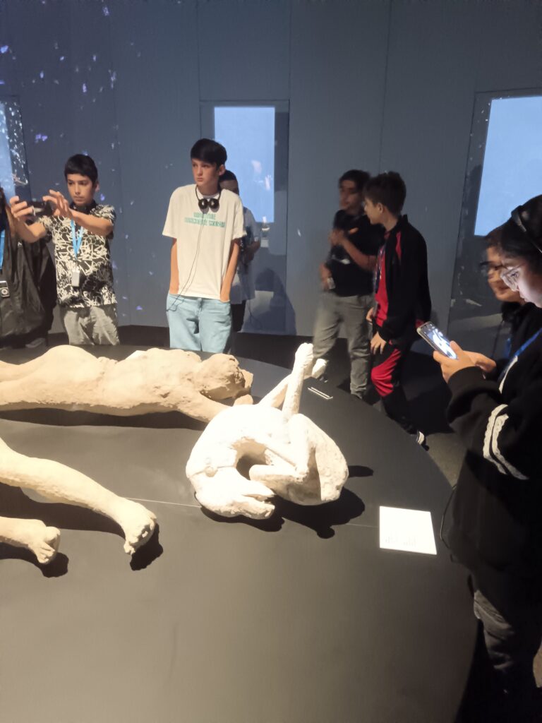 Accompagnés par leur guide, les élèves ont ensuite parcouru les différentes salles de l’exposition, où ils ont pu admirer une riche collection d’objets, maquettes, statues et reconstitutions. Ces éléments leur ont permis d’approfondir leur compréhension de la vie quotidienne des habitants de Pompéi, entre détails historiques et découvertes archéologiques.