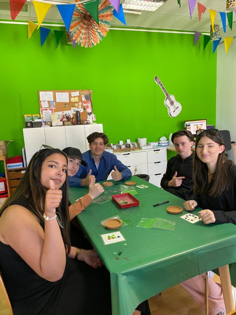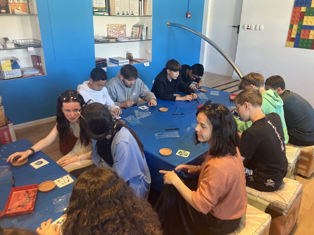 Durant la matinée, ils sont partis visiter du Pueblo Español, village reconstitué à l’occasion de l’Exposition Universelle de 1929, et représentant l’ensemble des styles architecturaux espagnols. Puis, ils ont participé à un atelier d’artisanat afin de créer une mosaïque. Ils se sont également promenés dans les jardins de Joan Maragall.