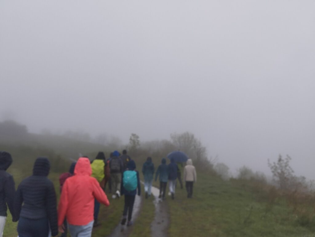 Partis du collège le lundi 29 avril, nous sommes arrivés sur le plateau de Gergovie en début d’après-midi. Cette 1ère randonnée devait être l’occasion d’initier les élèves à la lecture de paysages mais malheureusement, la météo en avait décidé autrement !