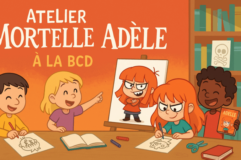 Au programme de ces 40 minutes : lecture des Bandes Dessinées, jeux, coloriages, revue de presse, dessins, chanson Mortelle Adèle de Guillaume Aldebert…