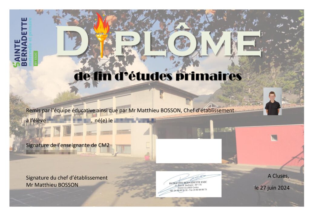 Félicitations aux élèves de CM2 de l’école primaire Sainte Bernadette !