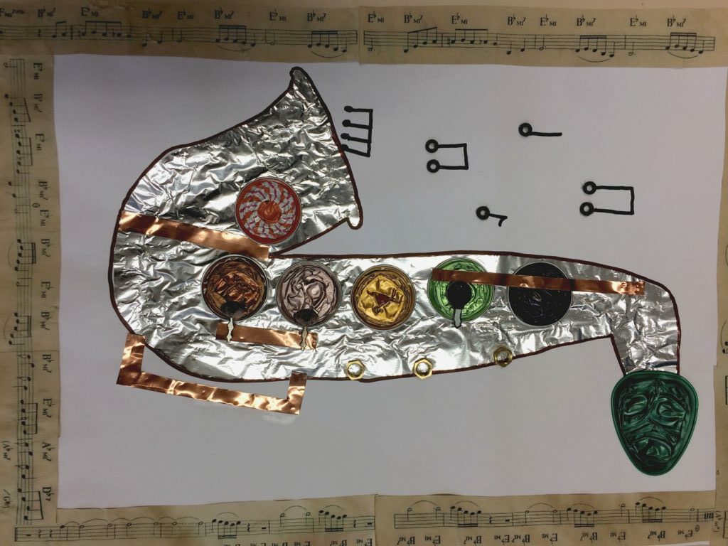 CM1 : Aurore Caruso avec son illustration de l’album L’incroyable histoire de l’orchestre recyclé