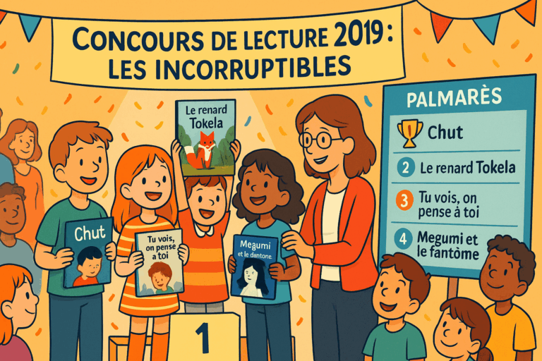 Pour la classe de CP, les gagnants sont Ayla RIGOTTI MARULANDA et son dessin de Chut et Samuel PASQUIER GIMENES qui a choisi d’illustrer Moi, Albert detestateur de livres.