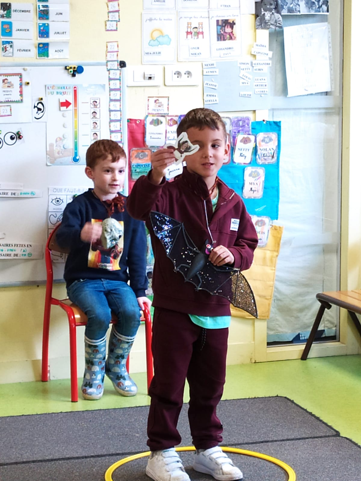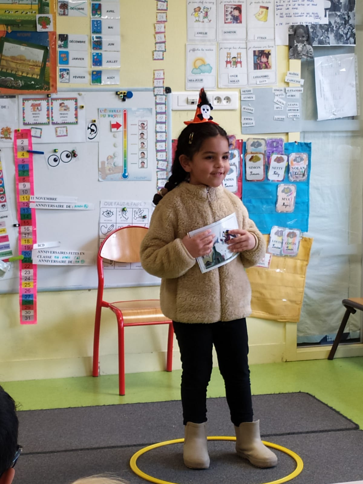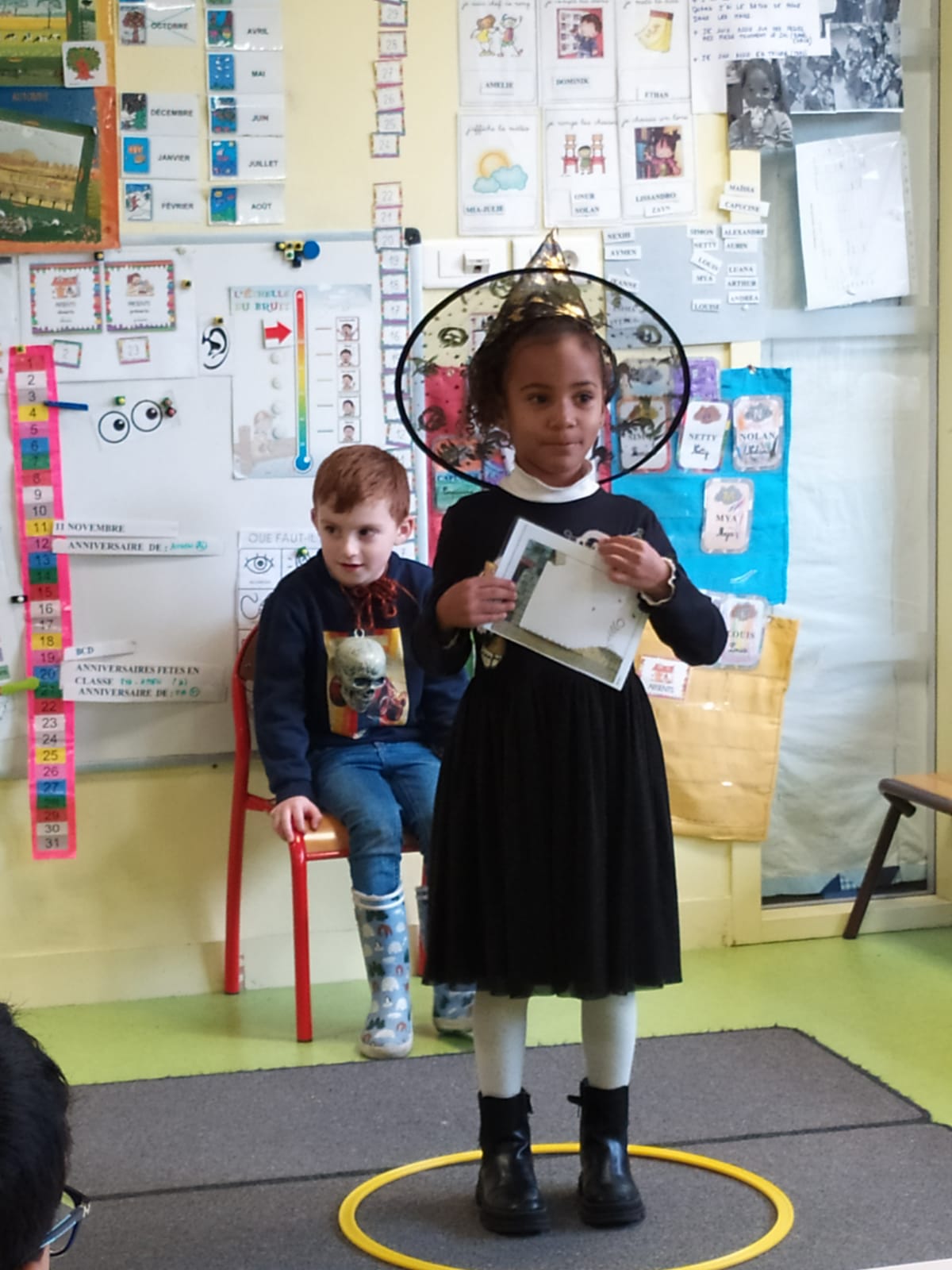À partir de cette lecture, les enfants ont préparé un petit spectacle retraçant les différentes étapes du récit. Chacun a pu prendre la parole à tour de rôle pour raconter une partie de l’histoire, une activité qui demande attention, mémorisation et écoute des autres. Cette représentation a ensuite été présentée aux élèves de Grande Section des autres classes ainsi qu’aux parents de la classe Coquelicot.