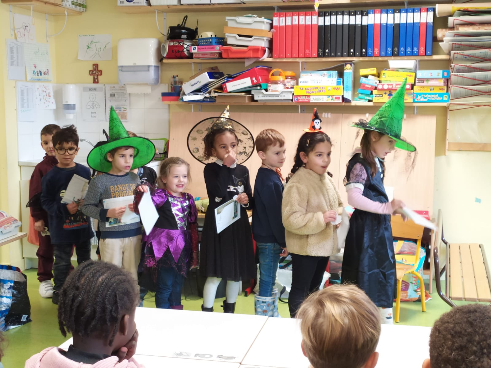 À l’École Sainte-Bernadette, les élèves de Grande Section de la classe Coquelicot, guidés par maîtresse Sandrine, ont vécu un joli moment d’apprentissage et de partage avant les vacances de la Toussaint. La classe a travaillé autour de l’album 1, 2, 3 Sorcière, un album à compter, un livre ludique mêlant histoire et découverte des nombres.