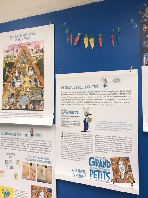 Du 03 au 17 septembre 2021, sur le temps des récréations de l’après-midi, les élèves sont invités à découvrir les étapes de la création de l’album de Sébastien Telleschi, un album-jeu Cherche et Trouve grand format très apprécié des élèves.