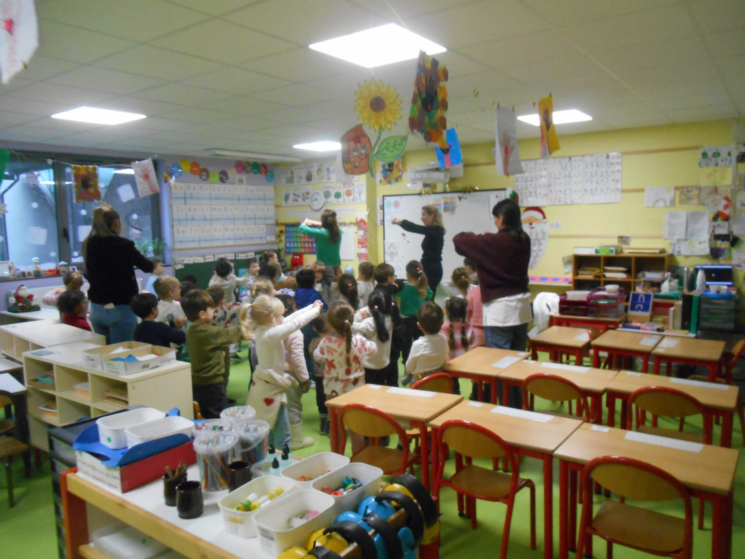 En école maternelle, la matinée s’est déroulée autour de trois ateliers, réunissant des groupes d’élèves de Petite, Moyenne et Grande Sections, issus de toutes les classes.