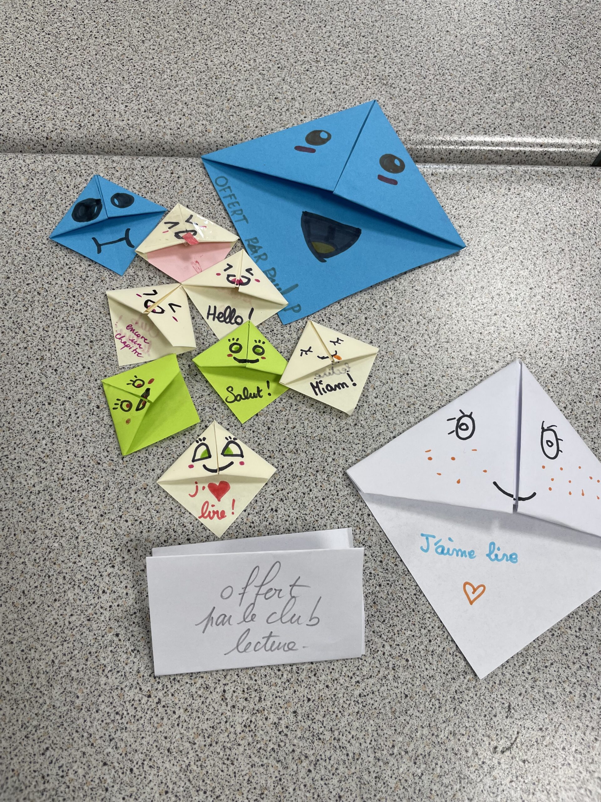Au programme : la fabrication de marque-pages façon kawaii. Armés de papiers colorés, de feutres et de beaucoup d’imagination, les participants ont réalisé de jolis marque-pages pleins de douceur et de bonne humeur. Certains élèves en ont bien sûr gardé un pour eux, pour accompagner leurs lectures, mais la majorité a été créée pour être offerte aux autres élèves de l’école.