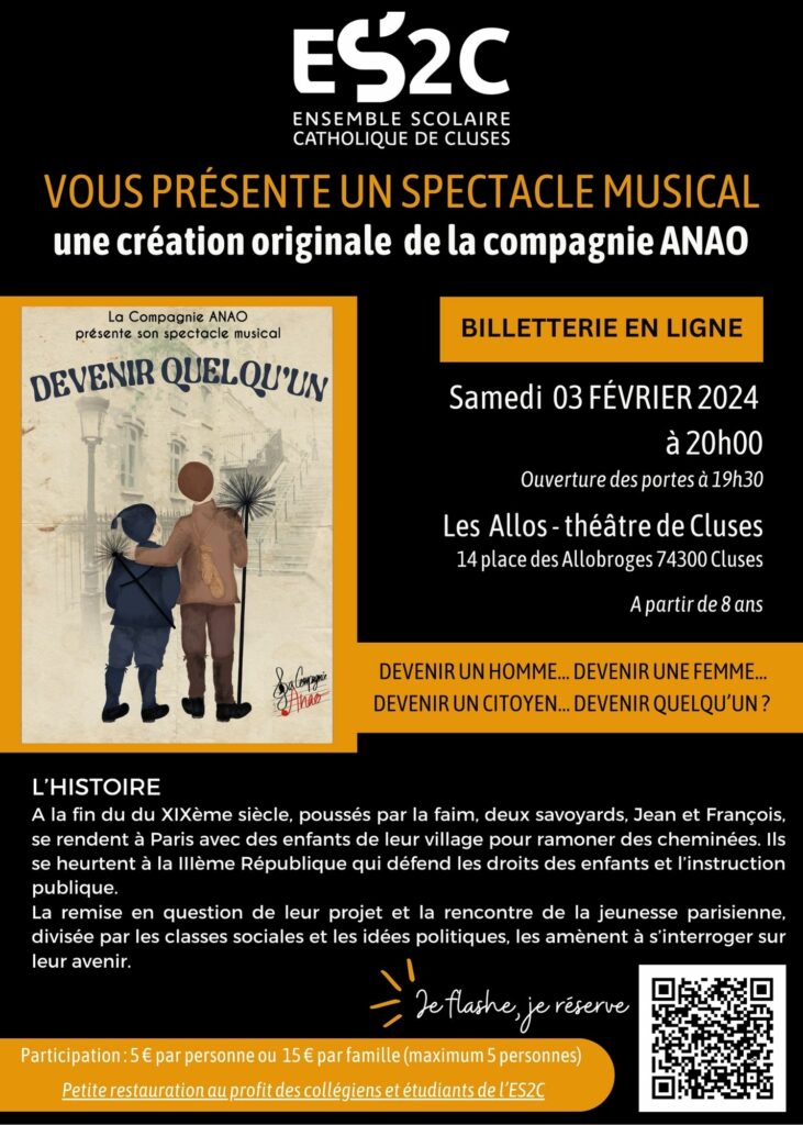 L’ES2C s’associe avec la Cie ANAO et vous convie le samedi 03 février 2024 à 20h au théâtre des Allobroges à Cluses à un spectacle musical.