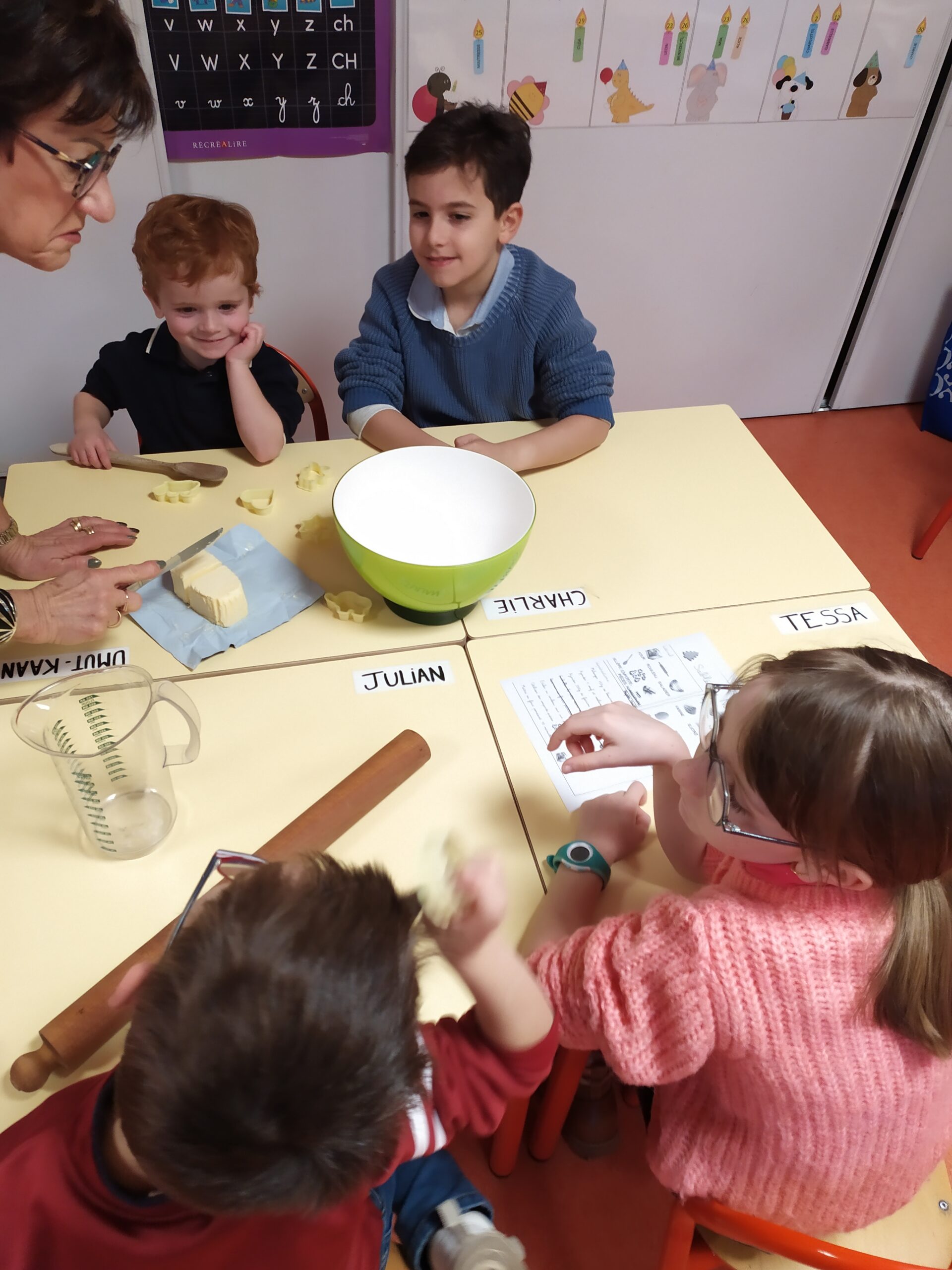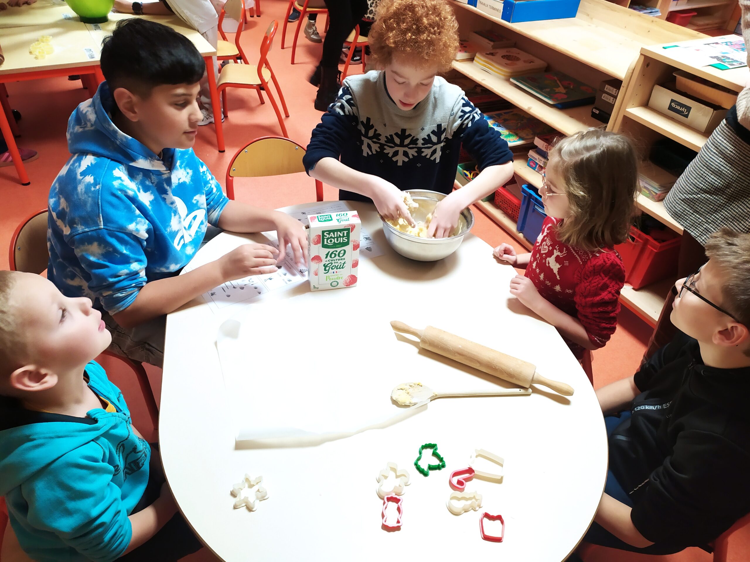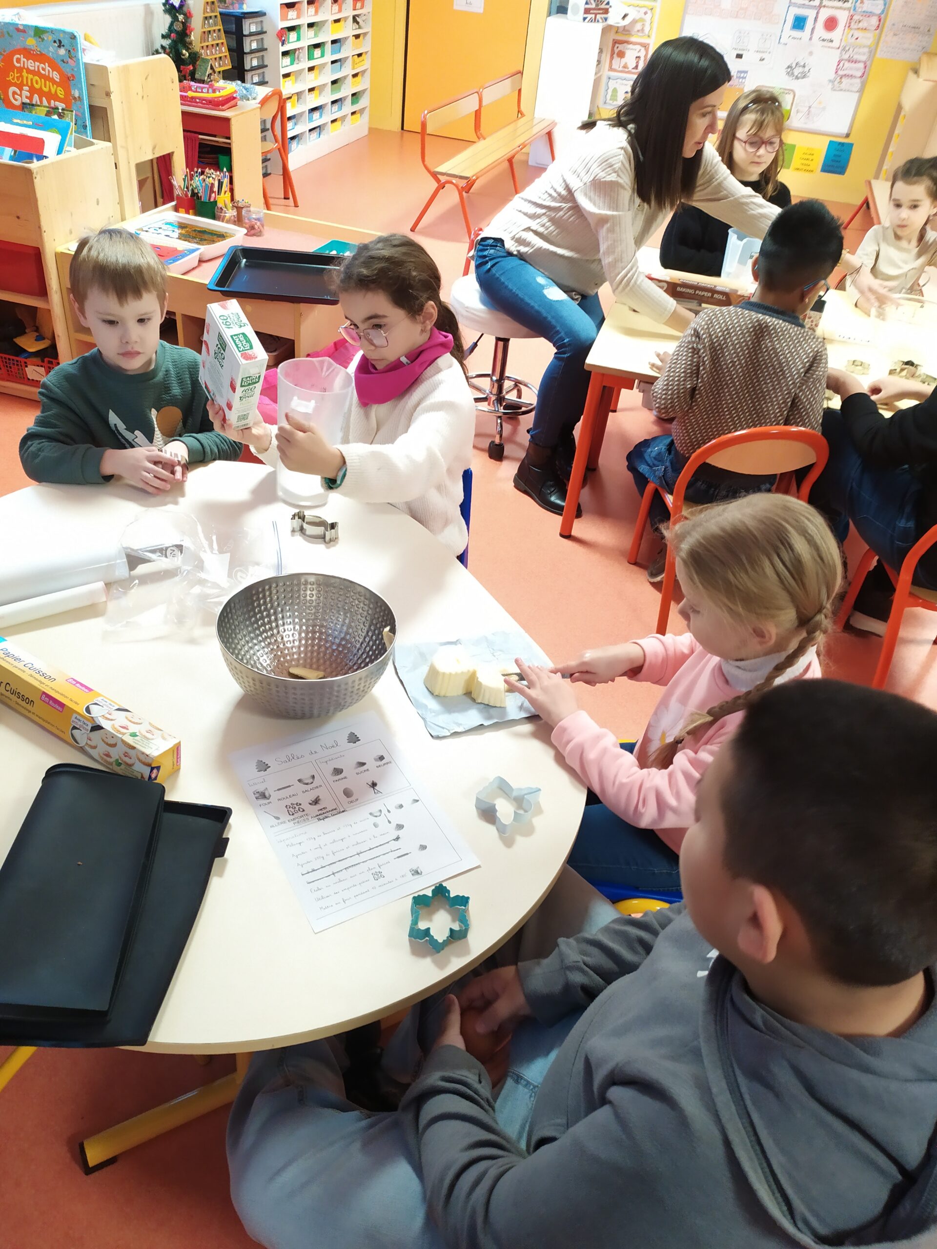 Au programme : cuisine et bricolage ! Certains binômes ont préparé de délicieux sablés, tandis qu’un autre groupe a créé de jolies guirlandes pour décorer la classe. Après un premier temps d’activités, les enfants ont inversé les rôles afin que tous puissent expérimenter l’ensemble des ateliers.