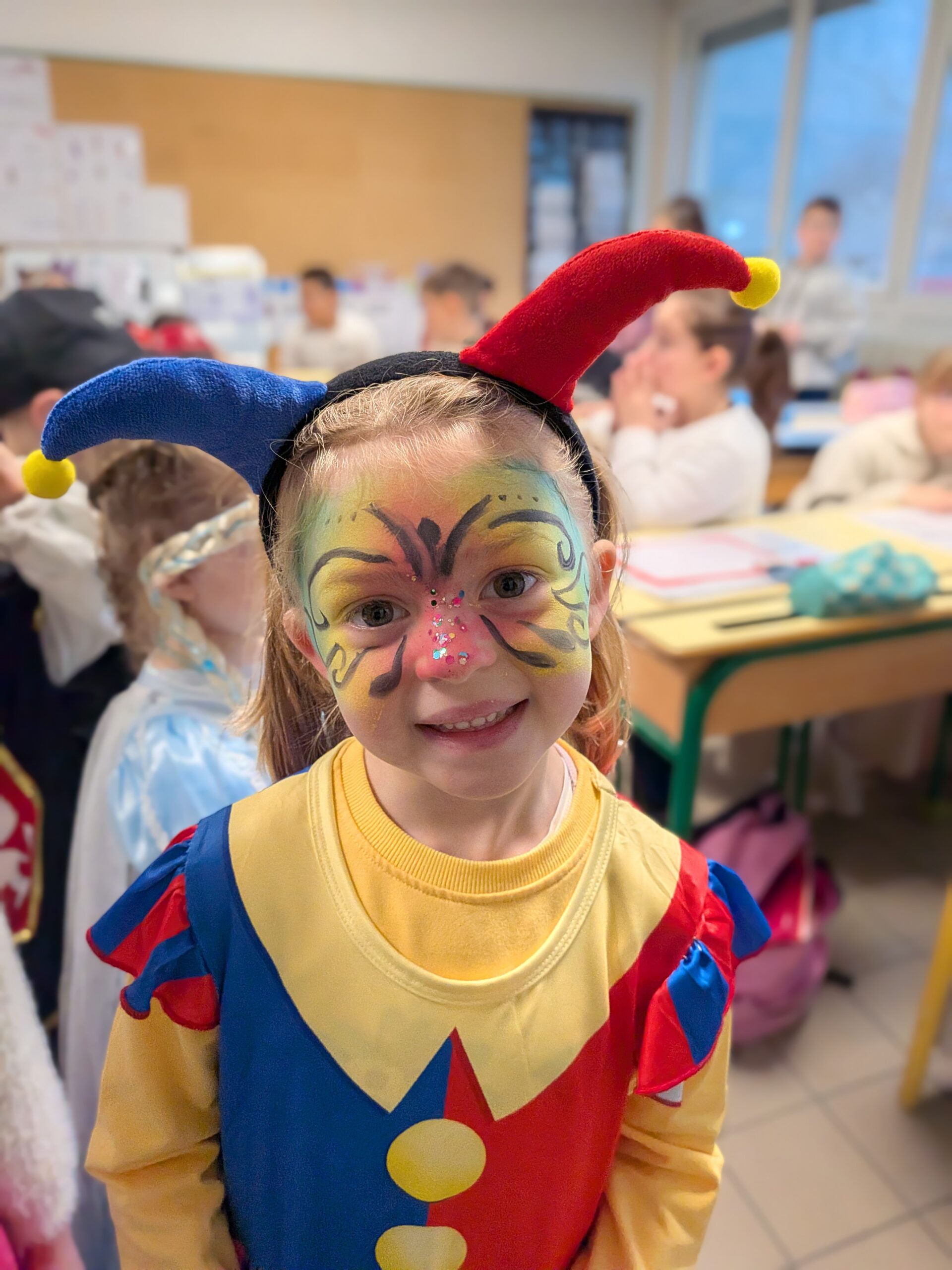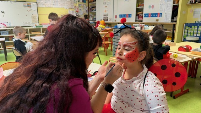 Dans la classe Tournesol de maîtresse Élodie, les élèves ont vécu un moment tout particulier grâce à la venue d’une maman d’élève, maquilleuse professionnelle, qui est venue maquiller les enfants de la classe pour leur plus grand bonheur.