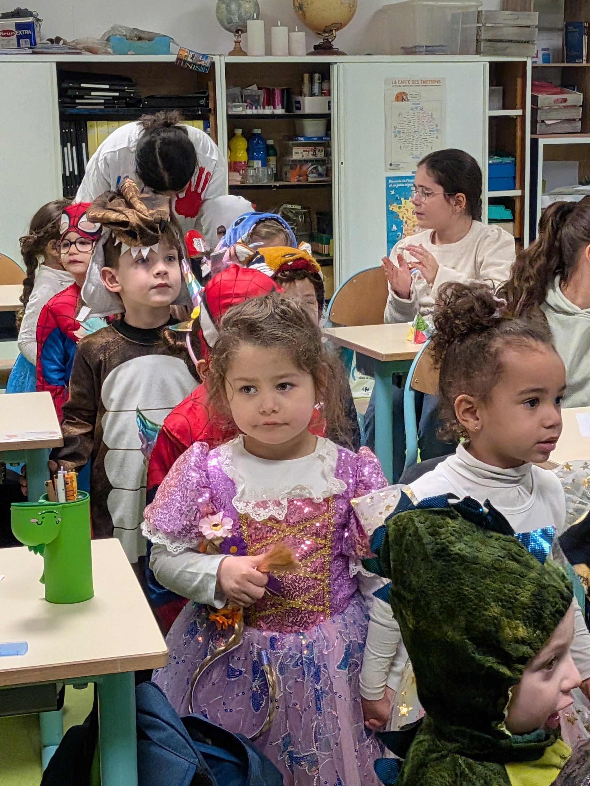 Dès 8h20, les enfants de maternelle costumés ont été accueillis dans leurs classes, impatients de commencer cette journée pas comme les autres.