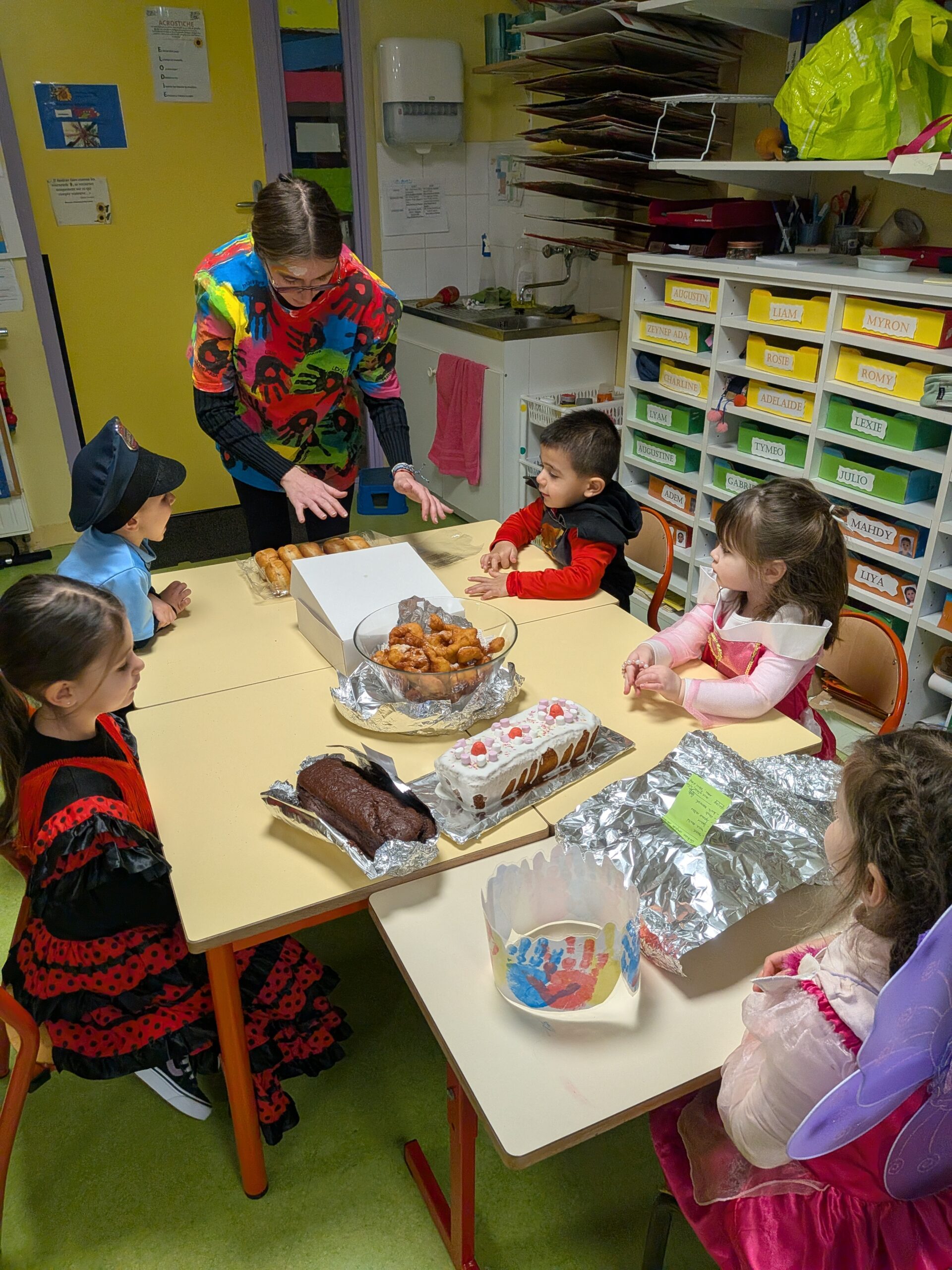 Un goûter a ensuite été partagé : les parents qui le souhaitaient avaient préparé bugnes et autres gâteaux, distribués aux enfants pour le plus grand plaisir des petits gourmands.