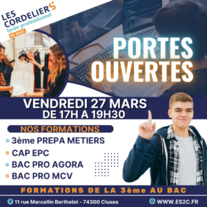 Le Lycée Professionnel Les Cordeliers à Cluses accueille plus de 200 élèves de la 3ème Prépa Métiers à la terminale professionnelle. Trois sections leur permettent de se former aux différents métiers du secteur tertiaire.