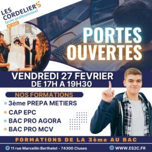 Implanté dans un environnement dynamique entre vallée et montagne, le lycée professionnel Les Cordeliers offre un cadre structurant, propice à l’apprentissage, à la responsabilisation et à la réussite. L’établissement accorde une attention particulière à l’accompagnement éducatif, au respect et à l’engagement des élèves.