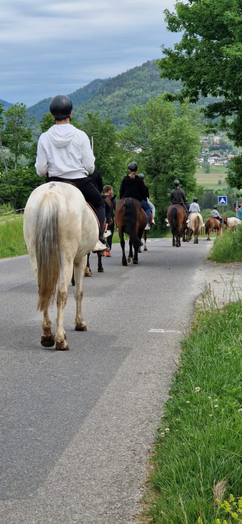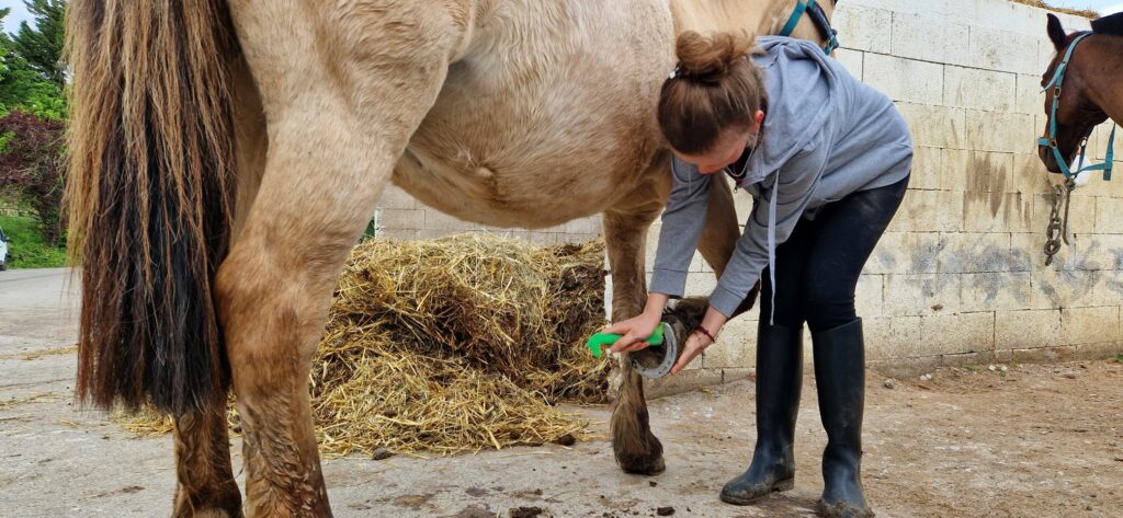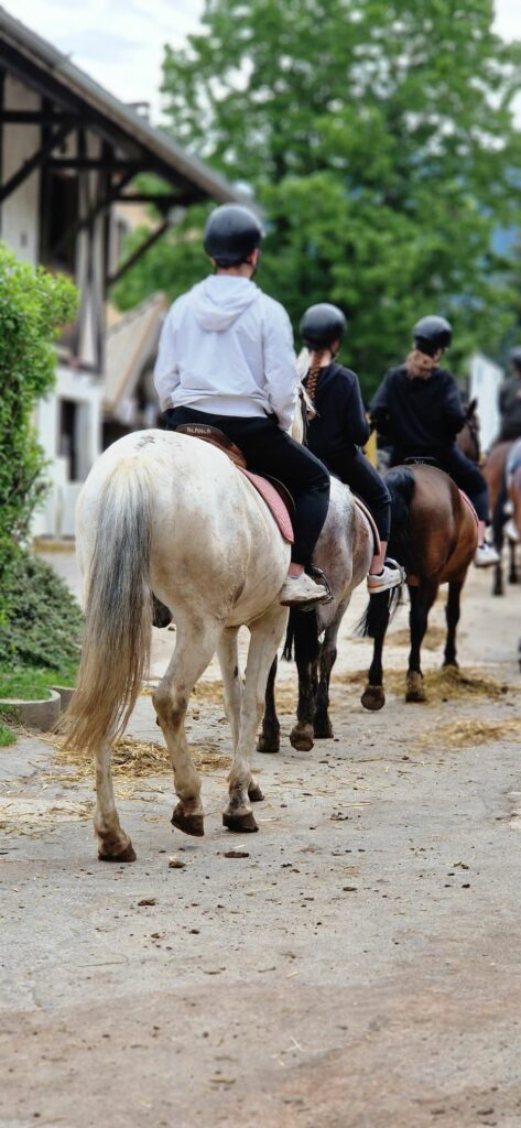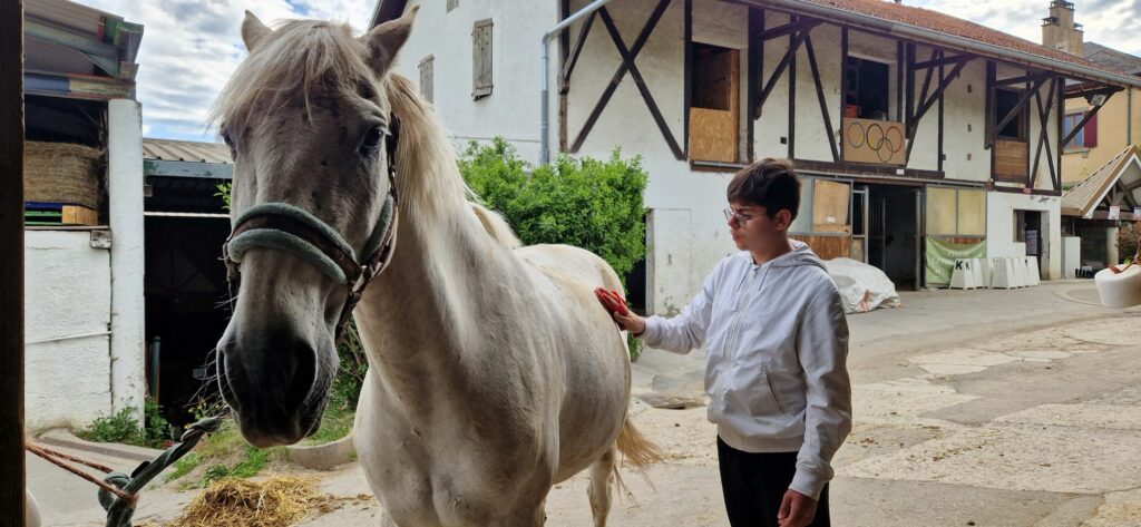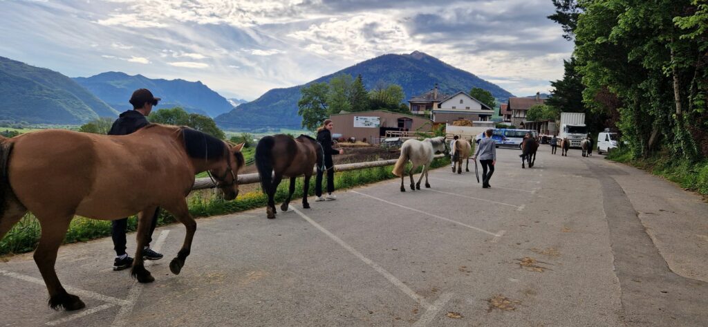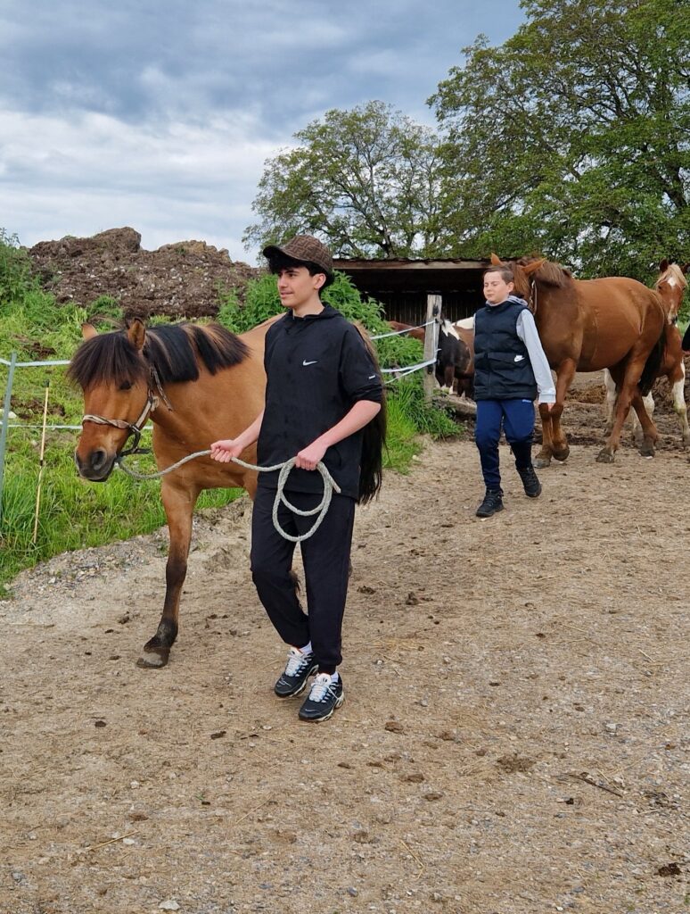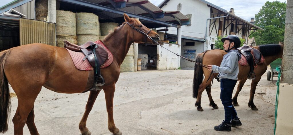 Pendant ces 2 journées, il ne s’agissait pas seulement de monter à cheval mais aussi de préparer les chevaux : aller les chercher au champ, chacun devant apprivoiser son cheval, le brosser, nettoyer ses fers, mettre la selle…