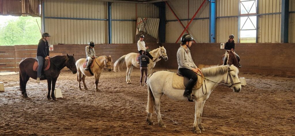 Direction ensuite le manège pour un cours pratique : monter, trotter ou galoper pour les élèves les plus à l’aise.