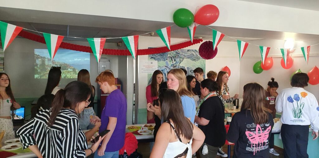 Cette journée a eu lieu à la cafétéria du lycée professionnel, décorée aux couleurs de l’Italie et avec des affiches réalisées par les élèves eux-mêmes.