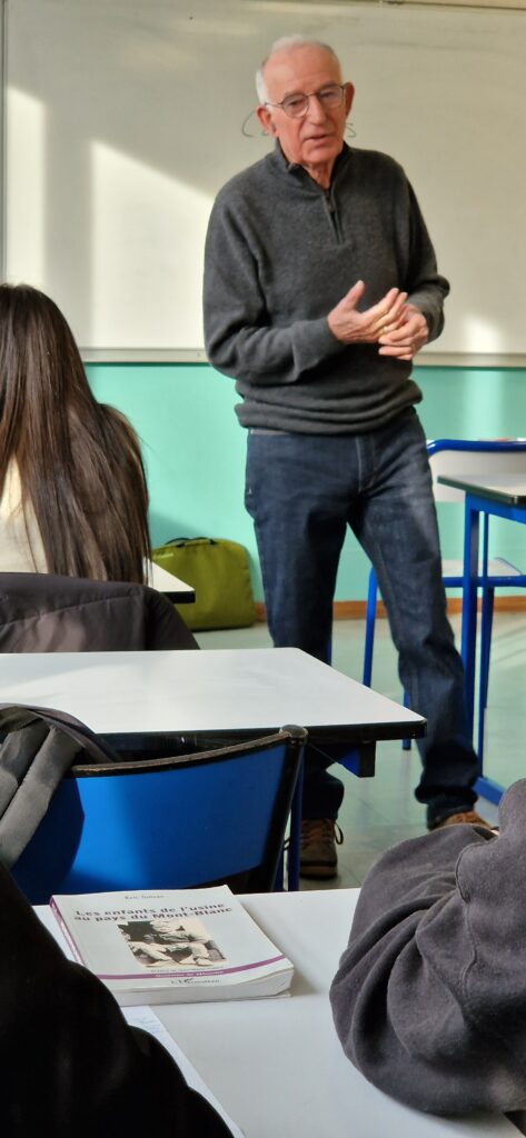 Lundi 10 et jeudi 13 février, la classe de 1ère Agora a eu la chance d’accueillir l’écrivain Eric Solvas pour son roman autobiographique « Les enfants de l’usine au pays du Mont-Blanc ».