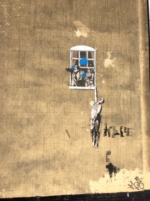 Nos élève ont arpenté les rues Bristol, capitale européenne du street art à la recherche de fresques et ont pu admirer les œuvres du célèbre artiste Banksy (entre autres) :