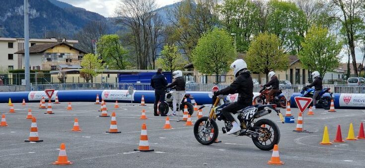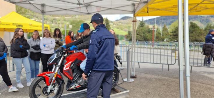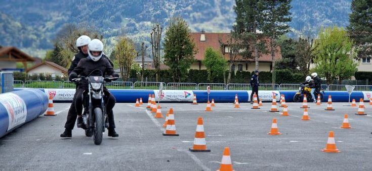Ensuite sur un simulateur, ils ont pu apprendre les rudiments de la conduite d’un deux roues avant de pouvoir conduire accompagné.e ou seul sur la piste d’éducation routière.
