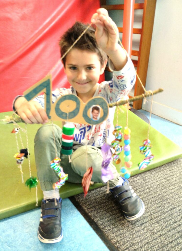 Pour cette occasion, il avait été proposé aux familles d’imaginer une collection de 100 objets que les parents ont pu confectionner avec leur(s) enfant(s) afin que ces objets soient apportés en classe ce jour-là. L’objectif fut d’avoir toute sorte d’objets, pas trop encombrants bien évidemment.