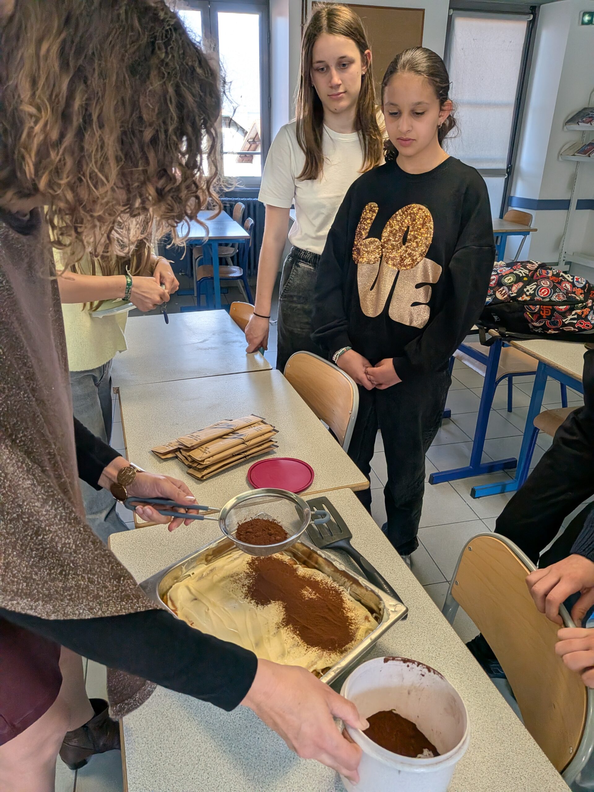 Originaire de régions telles que la Campanie, les Pouilles, la Calabre et la Sicile, cette danse dynamique est rythmée au son des mandolines et des tambourins. - Toujours en italien, les élèves de 5ᵉ L de Mme Pandolfo ont, quant à eux, travaillé autour de la gastronomie italienne en préparant un tiramisu en groupe. Après avoir étudié la recette et appris le vocabulaire des ingrédients en cours, ils ont pu déguster leur réalisation le lendemain, prolongeant ainsi l’expérience pédagogique.