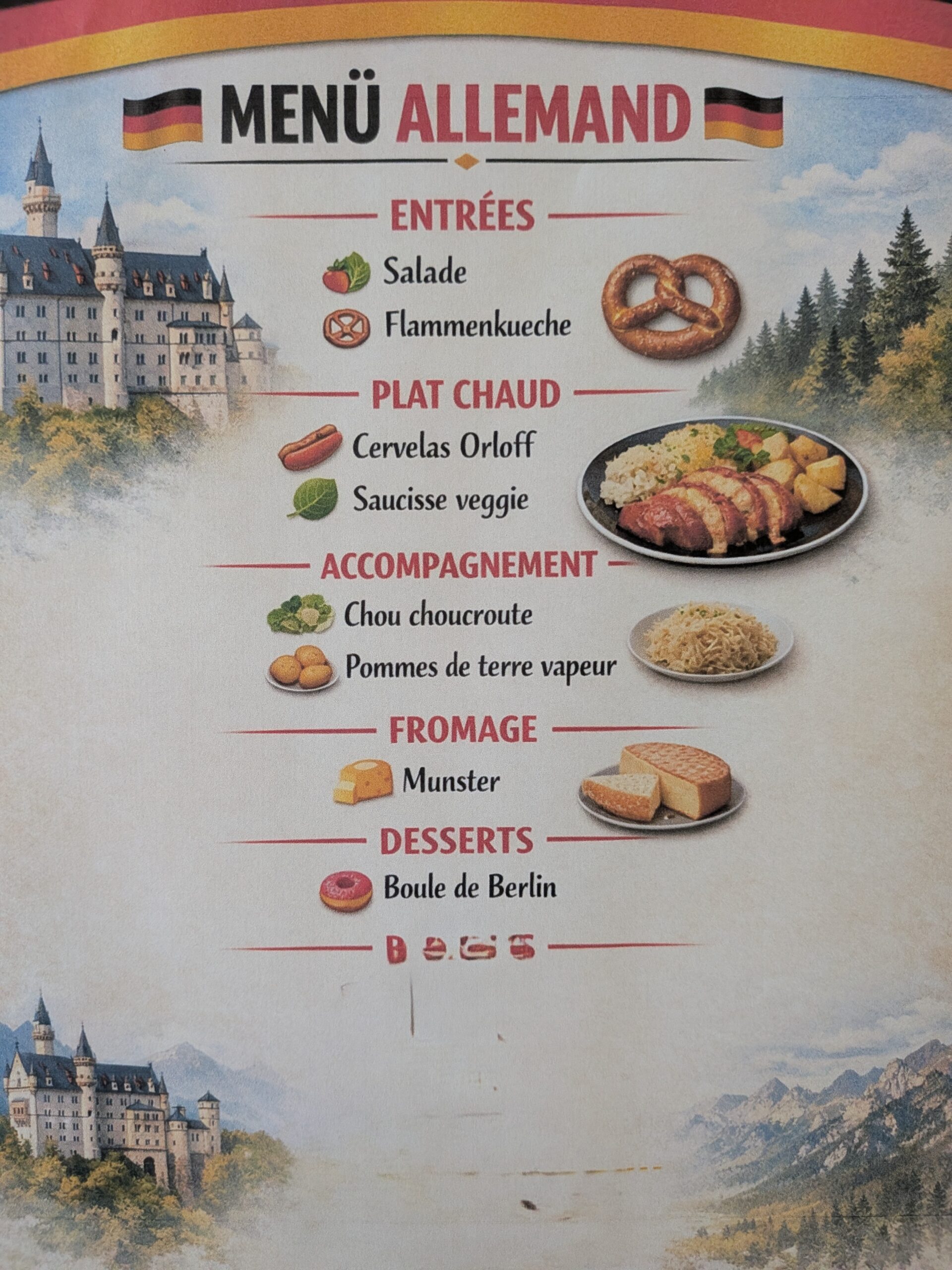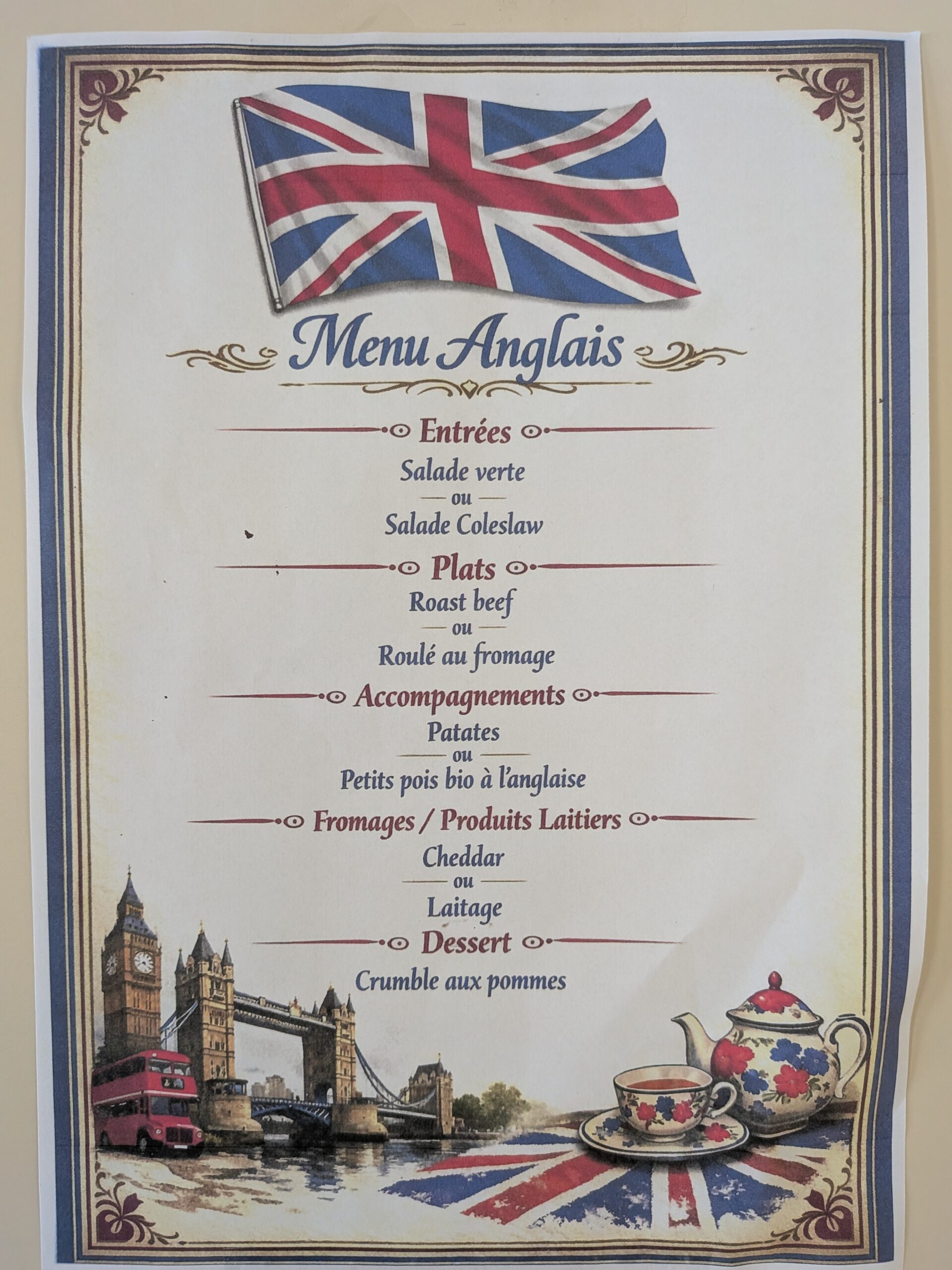 - des menus à thème à la cantine, traduits par les élèves de 3ᵉ section européenne, ont permis de prolonger l’expérience